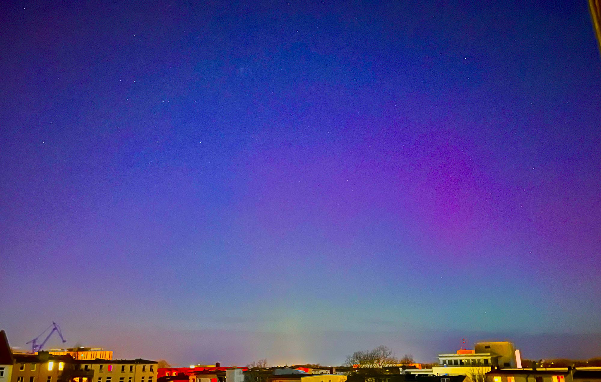 Fotografisches Polarlicht aus Chemnitz vom Balkon. Gegen 21.37 Mez