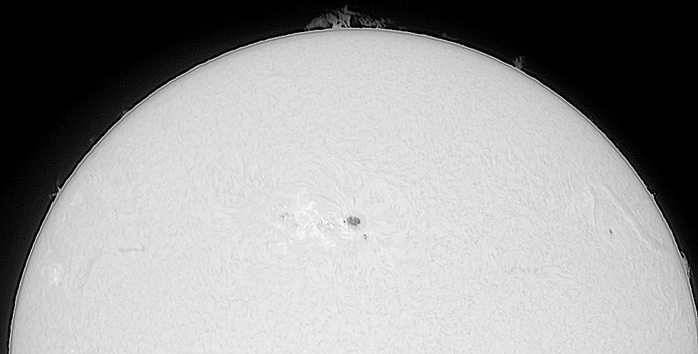 Heute Vormittag mal wieder die Sonne durch meinen 8" Newton aufgenommen. Ganz schön voll ... den Riesen sieht man sehr gut.