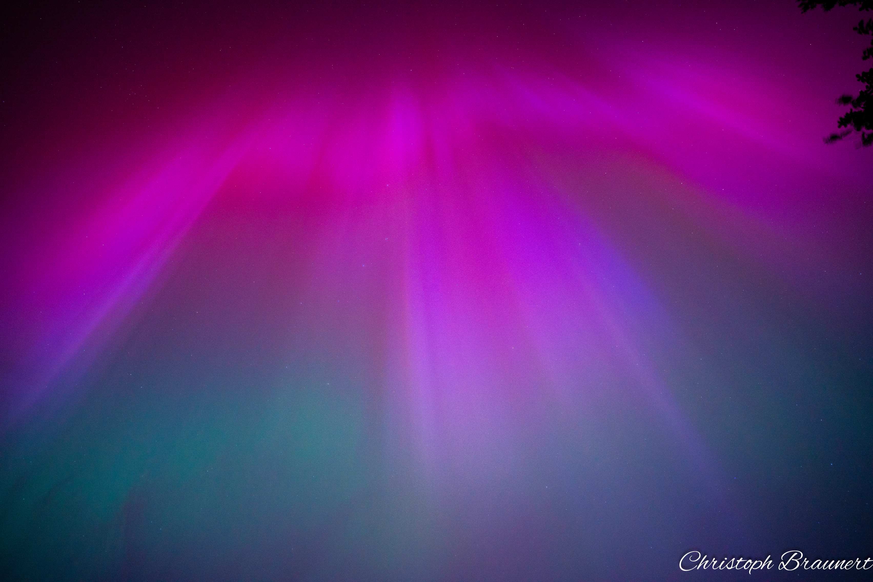 nach einigen Wochen stillen Mitlesens möchte ich nun auch etwas zum Forum beitragen. In 89331 Burgau (Bayern) waren am 10.05.2024 bereits nach Einsetzen der Dunkelheit die Auswirkungen des ersten CME´s sichtbar. Zunächst fotografisch noch während der späten Dämmerung (ca. 22:06 Uhr), dann immer heller werdend, bis rote Flächen und weißlich erscheinende Beamer (leicht) mit dem bloßem Auge sichtbar wurden. Bis ca. 23:00 Uhr wanderten diese einmal von Nordost nach Nordwest, dann habe ich gegen 23:00 Uhr die Beobachtung wegen krankem Kind daheim abbrechen müssen. Ich dachte, das war´s, und habe mich eh schon arg gefreut. Was dann allerdings noch kommen sollte, wusste ich zu diesem Zeitpunkt noch nicht...