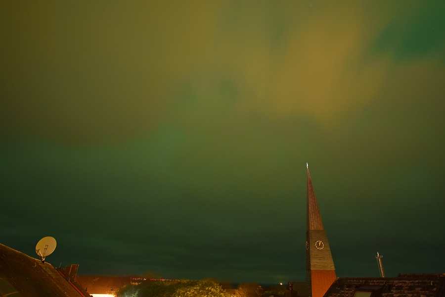 In Norddeutschland hielten sich die Wolken lange. Dann endlich ein paar Lücken, durch die nur grünes Polarlicht zu sehen war.