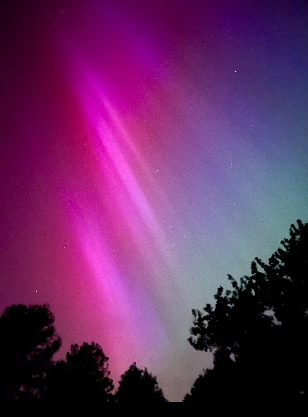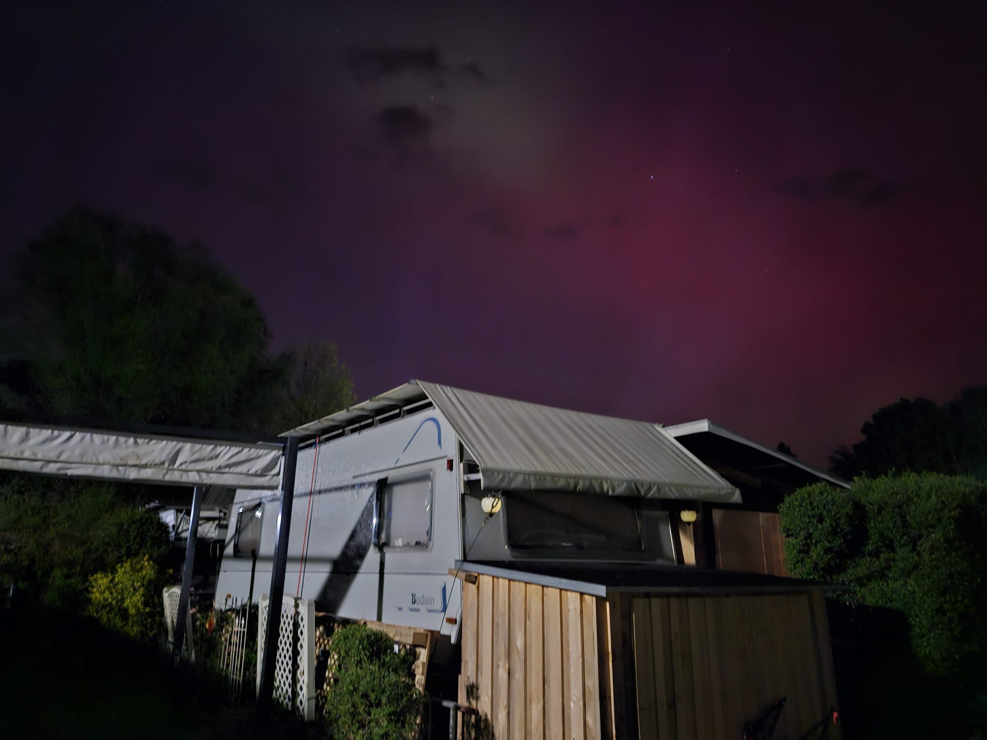 Polarlichter über unserem Campingplatz im tiefen Bayern. Ich hätte fast geweint. Das Rot war soooooo intensiv gegen 22:18, dass wir fast vom Stuhl gefallen sind. Grün war als bewegende weiße Wolken sichtbar.