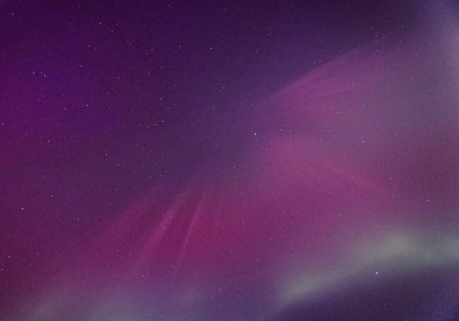 03:24 Uhr MESZ- die Morgendämmerung schreitet langsam voran und trotzdem immer noch violettes Polarlicht zu sehen.