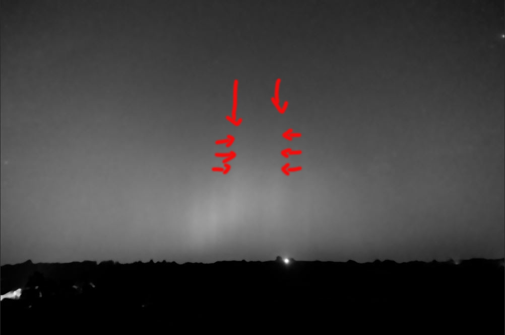 mir sind bei der Durchsicht der Bilder des Polarlichtes in der Nacht vom 11.05. auf den 12.05. eventuell GBRs aufgefallen. Die Strahlen gingen wohl teils über die doppelte Höhe der eigentlichen Polarlicht-Strahlen. Der erste stand in etwa zischen den beiden rechten Sternen des Sternbildes Cassipeia, der zweite rechts neben dem Sternbild Uhrzeit war in etwa zwischen 23:20 Uhr und 23:30 Uhr MESZ. Anbei ein Foto: