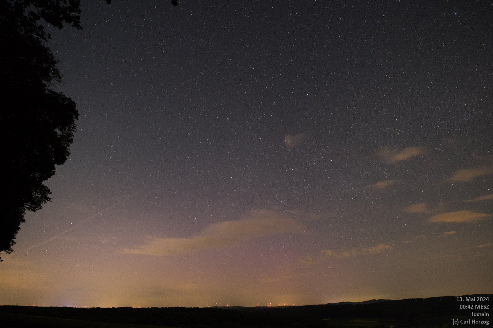 Die priv. Wetterstation Süderlügum (54° 52´19″ N/8° 54´45″ O) vermeldet ein schwaches fotografisches Polarlicht am 13.05.24 von 00 Uhr bis etwa 03 Uhr MESZ.