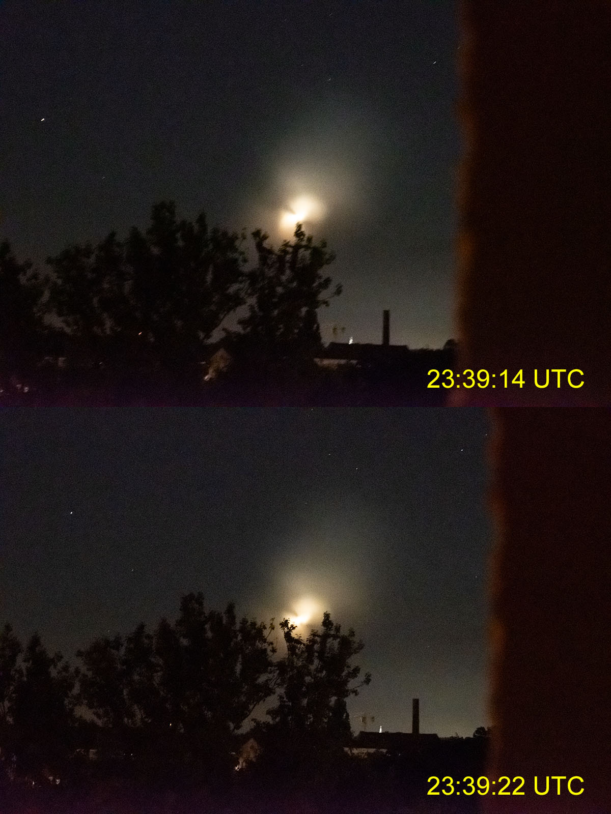 Bewegte sich vom Per in Richtung Aur. Nach den beiden Bildern etwa mit 1,1° in 8 sek.