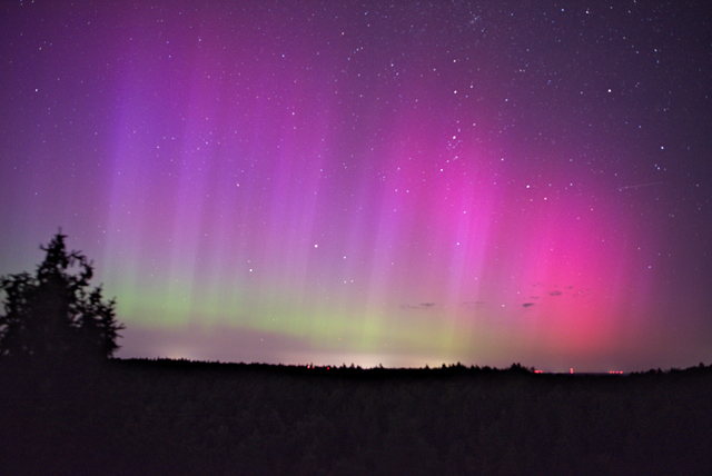 Durch den Lichtsiff der Stadt waren die PL während der Aktivitätsmaxima in Form von violetter Färbung und manchmal etwas Struktur zu beobachten.