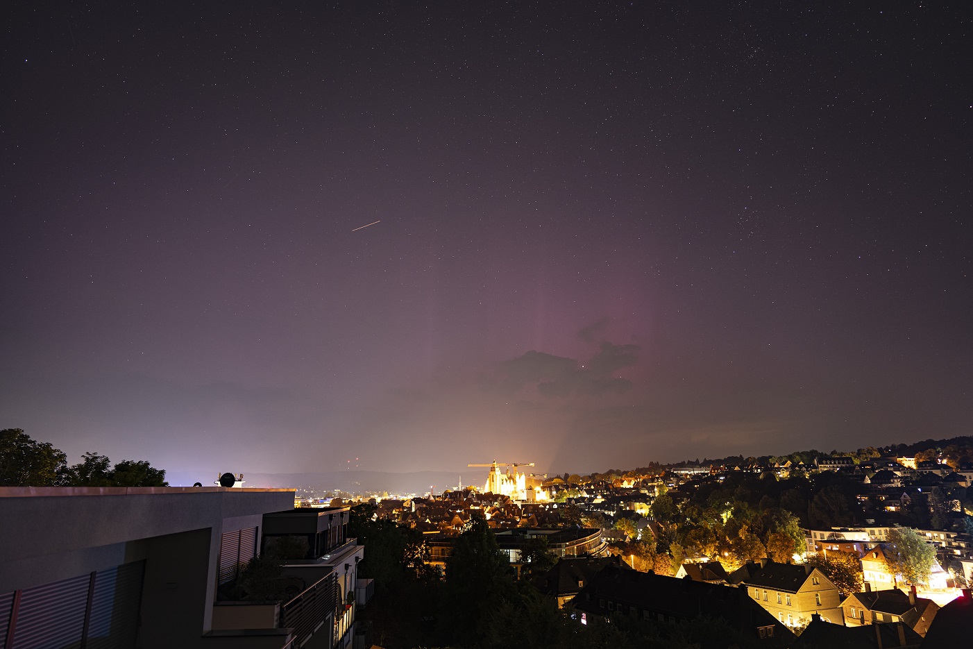 Allerdings zeigten sich in den Stunden vor Mitternacht im Norden überm Böhmerwald einige Sterne am Horizont und in dieser Wolkenlücke FOTOGRAFISCHES Polarlicht! Es muss, wie eure Bilder zeigen, ein tolles Polarlicht gewesen sein! Einige Strahlen sind auf den Aufnahmen zu erkennen!
