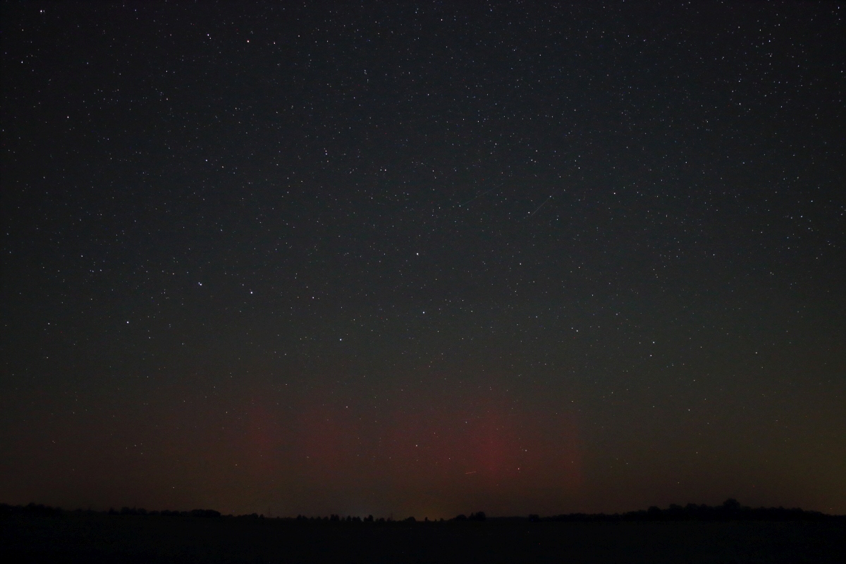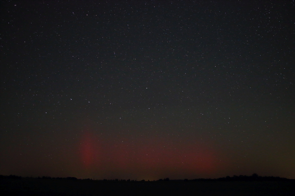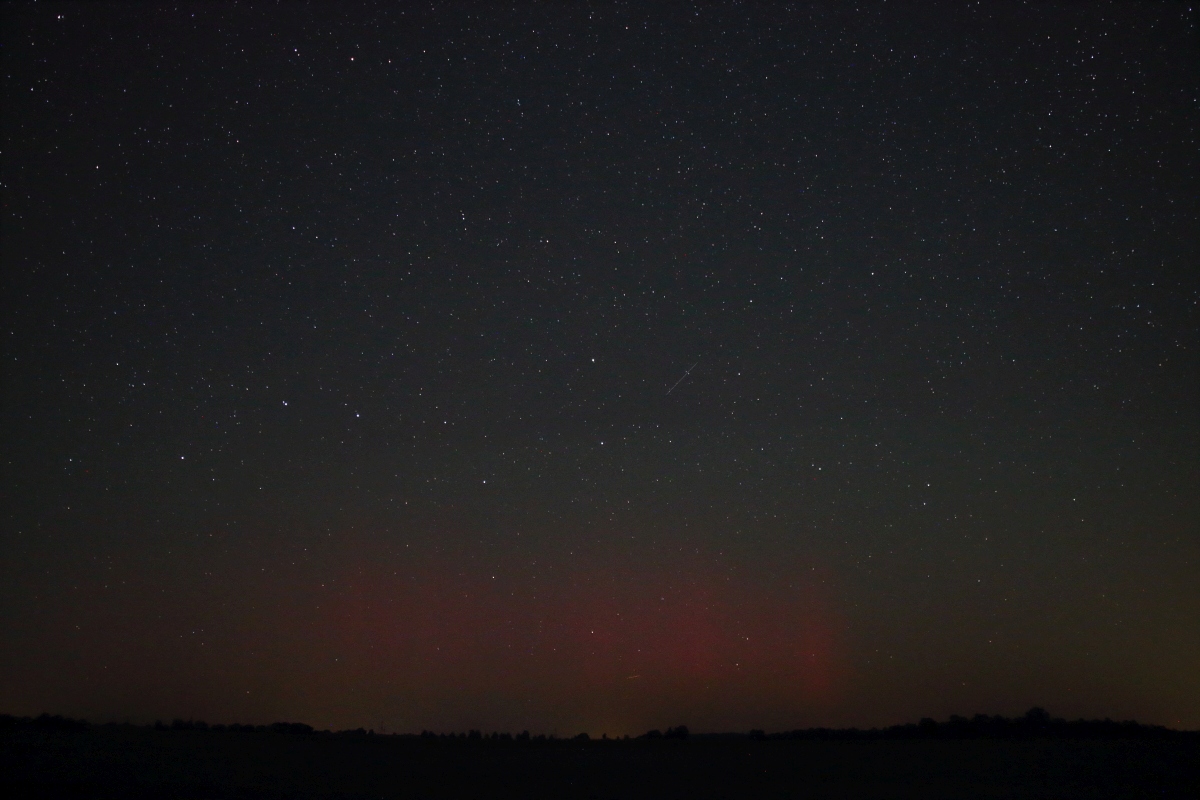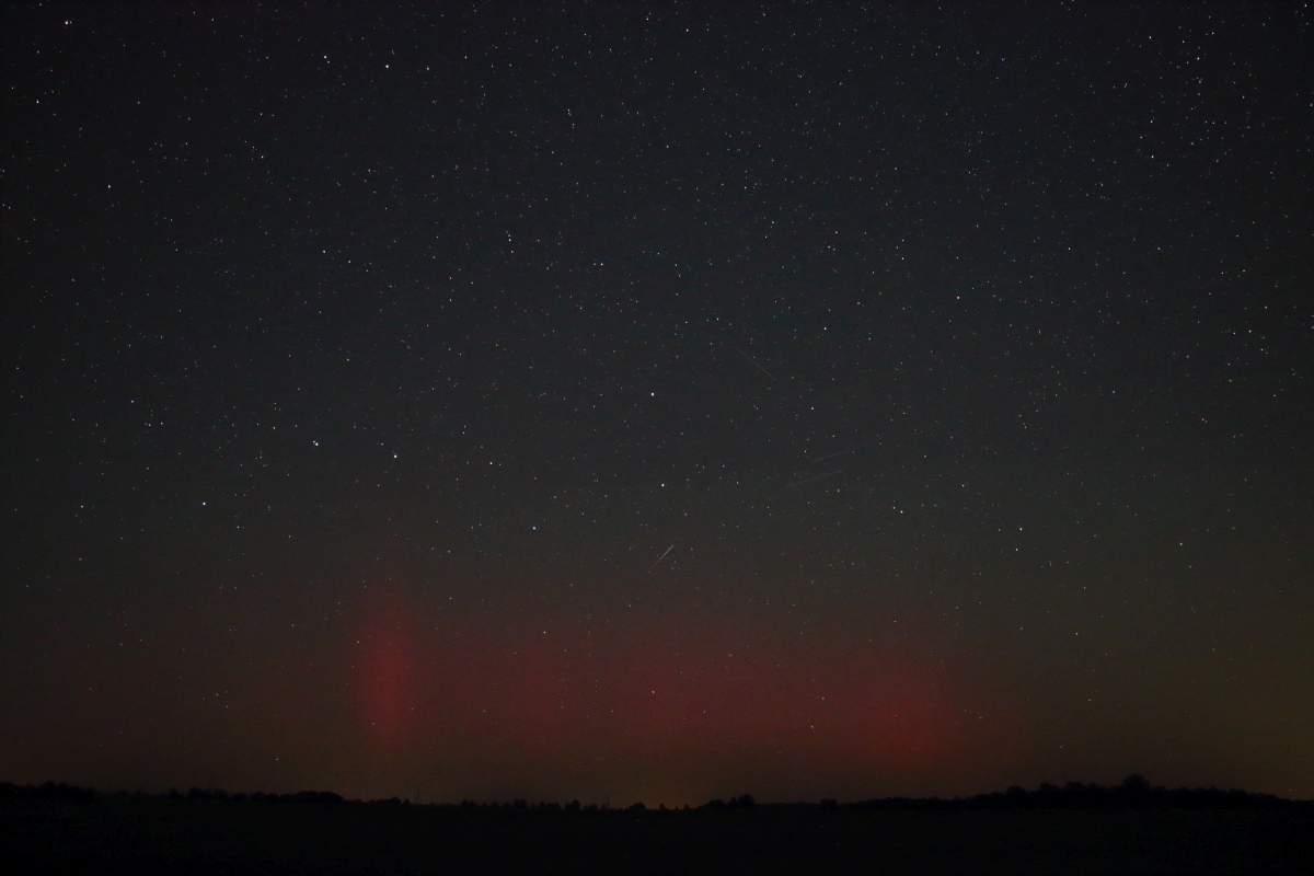 Da es zu diesem "Event" (noch) keine Meldung gibt, lade ich hier für's Archiv auch mal wieder etwas hoch. Die (Folge)Aufnahmen entstanden während einer fußläufigen Exkursion in ein für mich weitgehend unbekanntes, aber landschaftlich zweifelsohne ausgesprochen reizvolles Gebiet. Die Kamera lief eigentlich nur zu Testzwecken. Ein Kontrollblick förderte dann allerdings Überraschendes zutage. Angesichts der geringen Aktivität und einer von Michaels Tool selbst für 53.5N prognostizierten Wahrscheinlichkeit von nicht viel mehr als 5% zu diesem Zeitpunkt war das am Ende doch eine erstaunlich klare Angelegenheit bei Bedingungen, die sich horizontnah alles andere als einladend erwiesen. Über der Melange aus Dunst und Staub zeigte sich bei ausgesprochen trockener Luft allerdings auch ein sehr klarer Himmel.