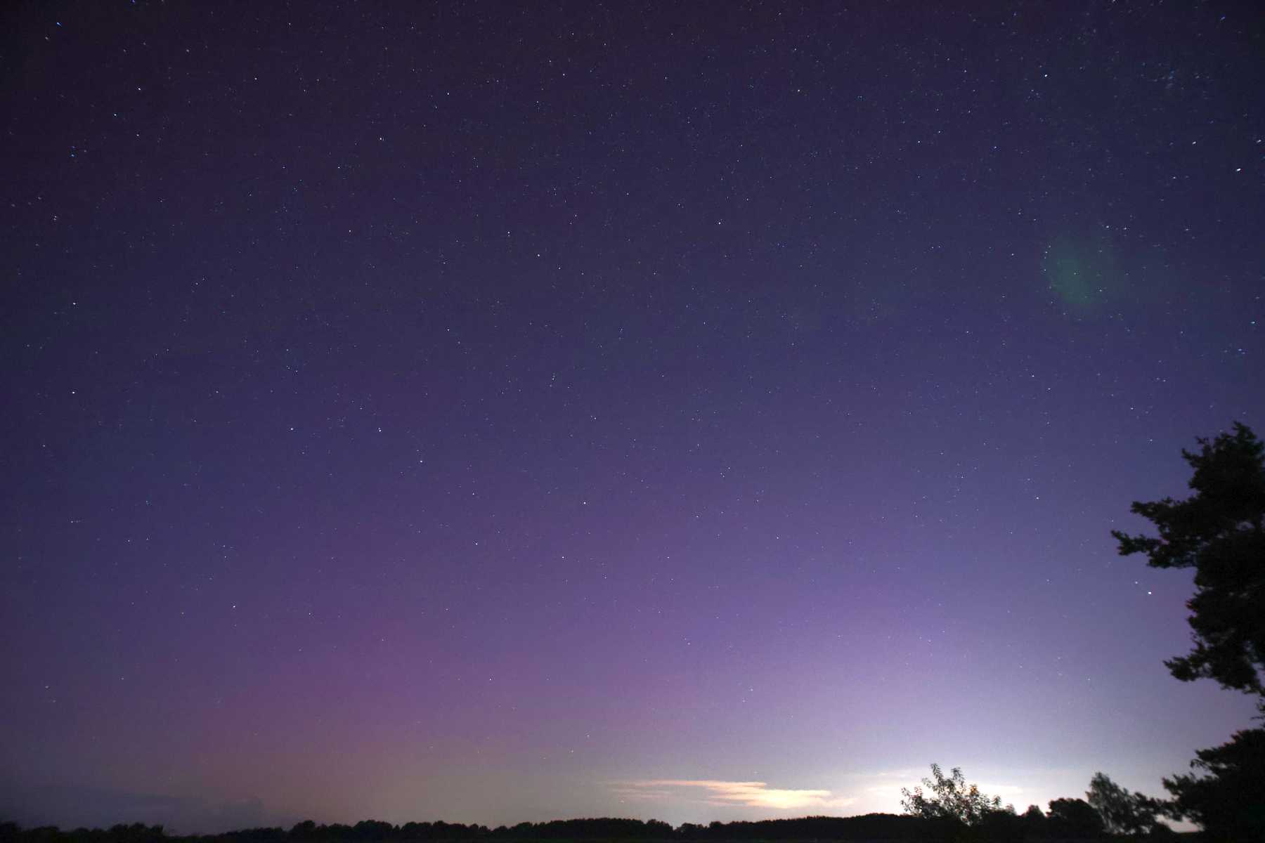 Besonderheit: 20:41 - 20:48 UTC pulsartig auftretende (fotografische) grüne Erscheinungen im Bereich der Sternbilder Perseus und Camelopardis, etwa auf der Höhe des Polarsterns; vermutlich Picket Fence