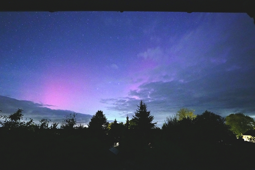 Erst spät bin ich dazu gekommen, auf die Webcam vom Peilturm Kap Arkona zu sehen. Weil dort PL zu sehen war, habe ich noch schnell die Kamera aufs Fensterbrett gestellt. Zwischen den aufziehenden Wolken war das PL zumindest fotografisch nachweisbar.