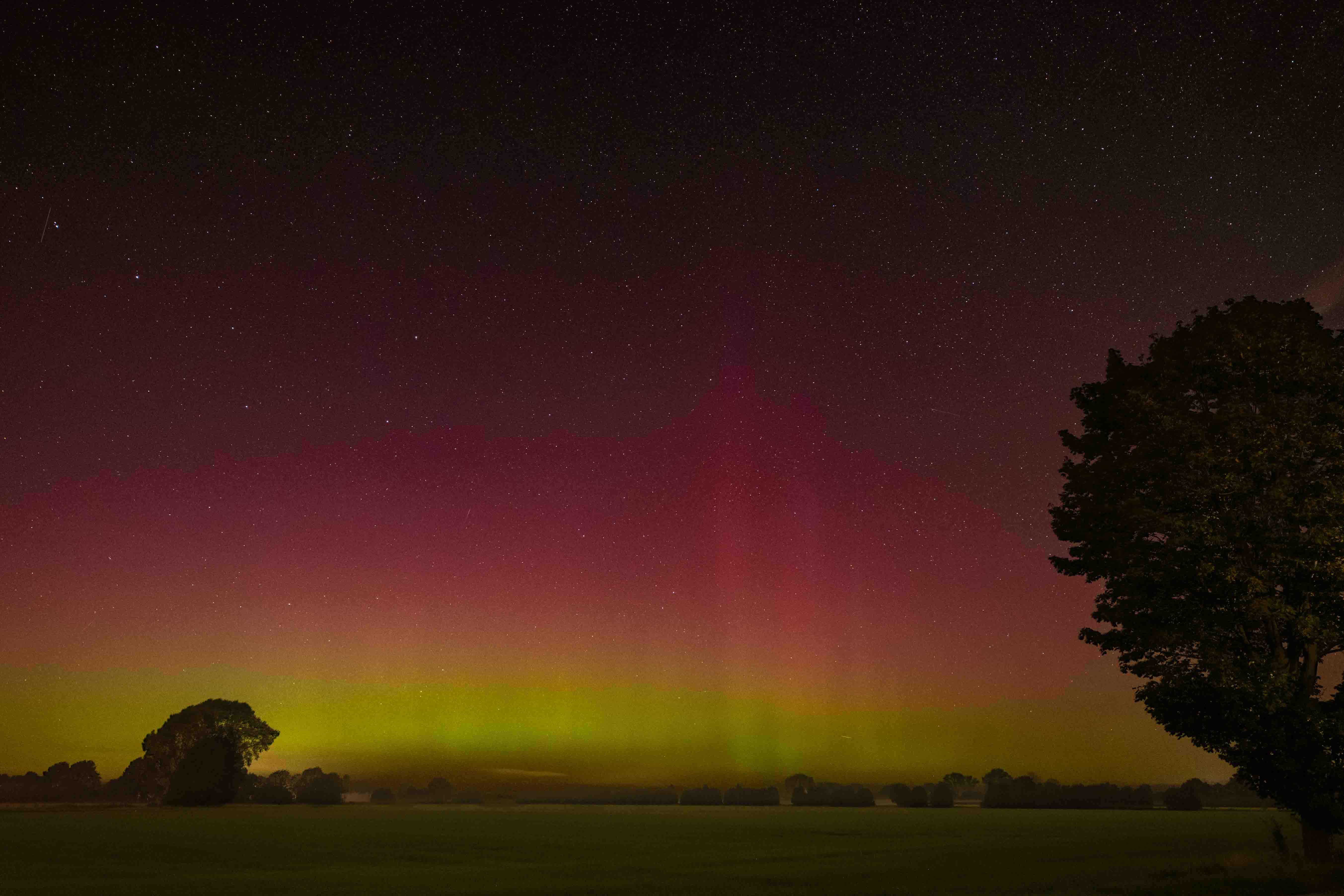 Kommentar: rotes Polarlicht als Strahlen und Flächen