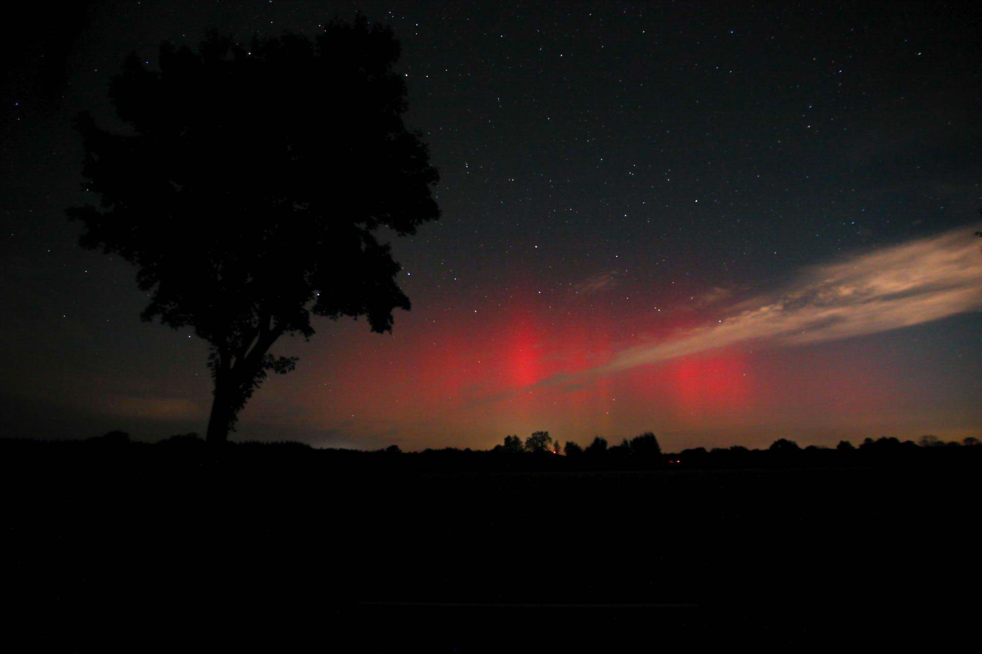 nahe Scheeßel war das Polarlicht gut eine Stunde wunderbar zu fotografieren bzw. visuell anzuschauen.