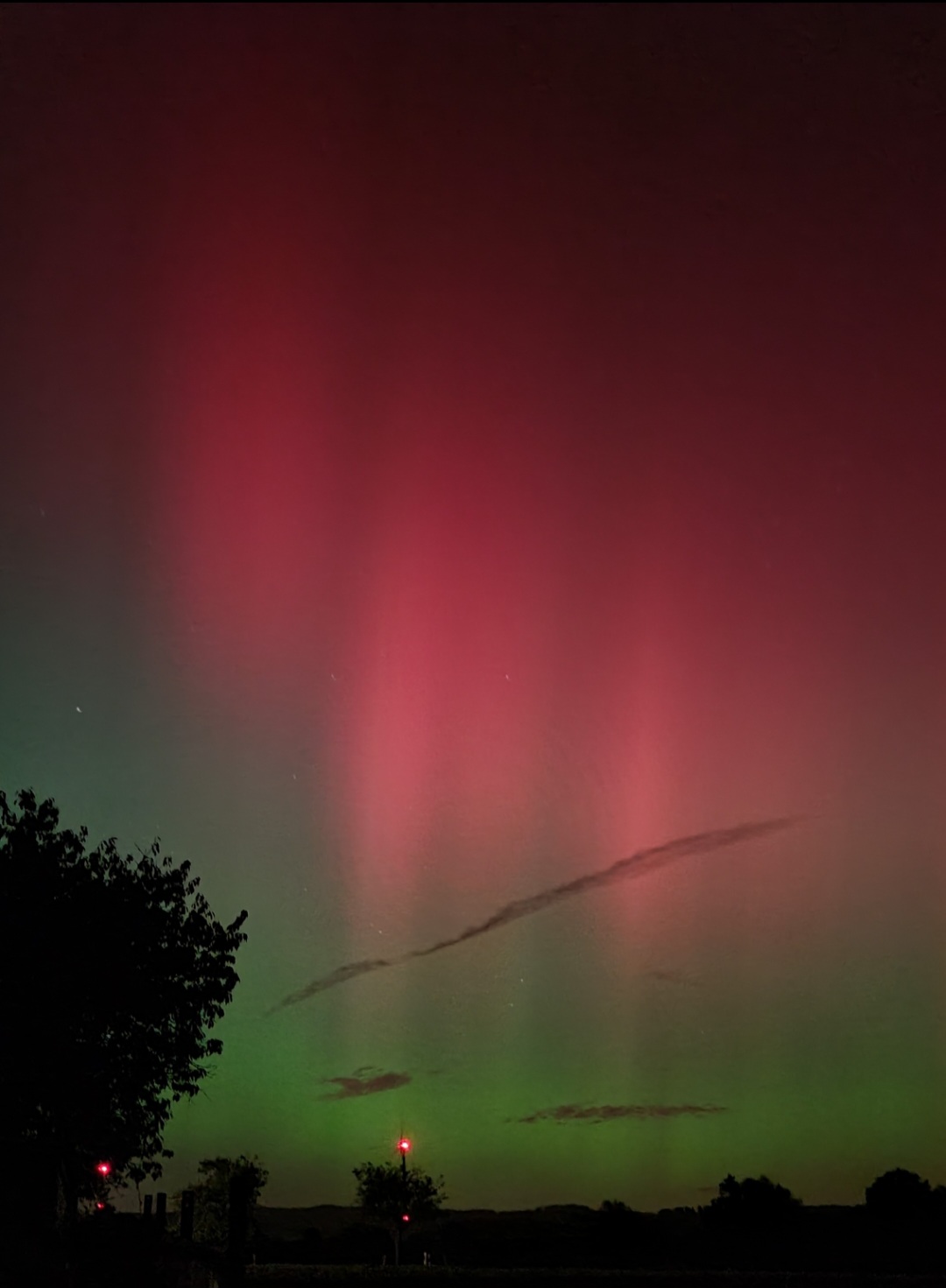 Abermals durften wir im Süden Polarlichter erleben. Das Foto mit dem iPhone 15 nahe Tübingen um 22:26 Uhr (MESZ) geschossen