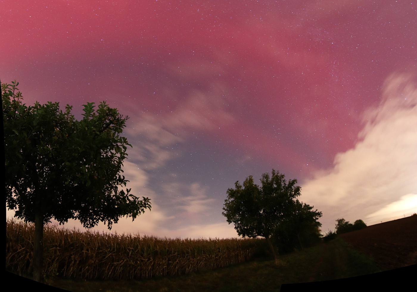 Zwischen 22:40 und 23:05 Uhr in 37586 Dassel deutlich visuelles Polarlicht in rot - entsprechend beeindruckend war dann auch das fotografische.