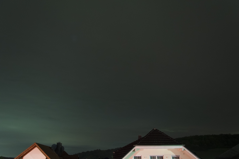 Gegen 20:00 war ich mit meiner Frau noch bei einem Freund, wo wir jedoch auch bereits rote Verfärbungen am Nordhimmel feststellen konnten. Wir sind dann gegen 22:15 Uhr nachhause, in der Hoffnung, mit der Kamera noch etwas reißen zu können. Gegen 22:30 eskalierte es dann völlig und man konnte mitten im Gewerbegebiet auf der Geniner Straße in Lübeck, trotz Lichtverschmutzung, ohne Probleme rote Strahlen sehen.