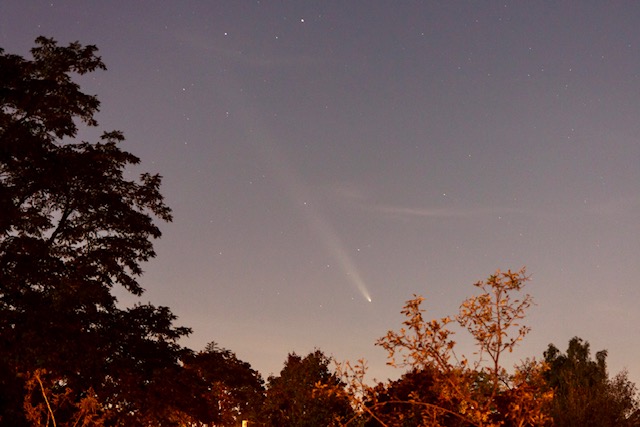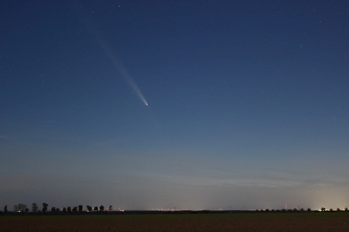 nun hat es auch in Dresden geklappt. Kein Woche nach dem großen Polarlicht nun ein schöner Komet. Er war weniger hell, als ich erwartet hatte. Mit zunehmnder Dunkelheit wurde er durch den langen Schweif aber durchaus eindrucksvoll. Ohne Mond- und Stadtlicht wäre er wohl richtig schön. Anbei noch zwei Aufnahmen.