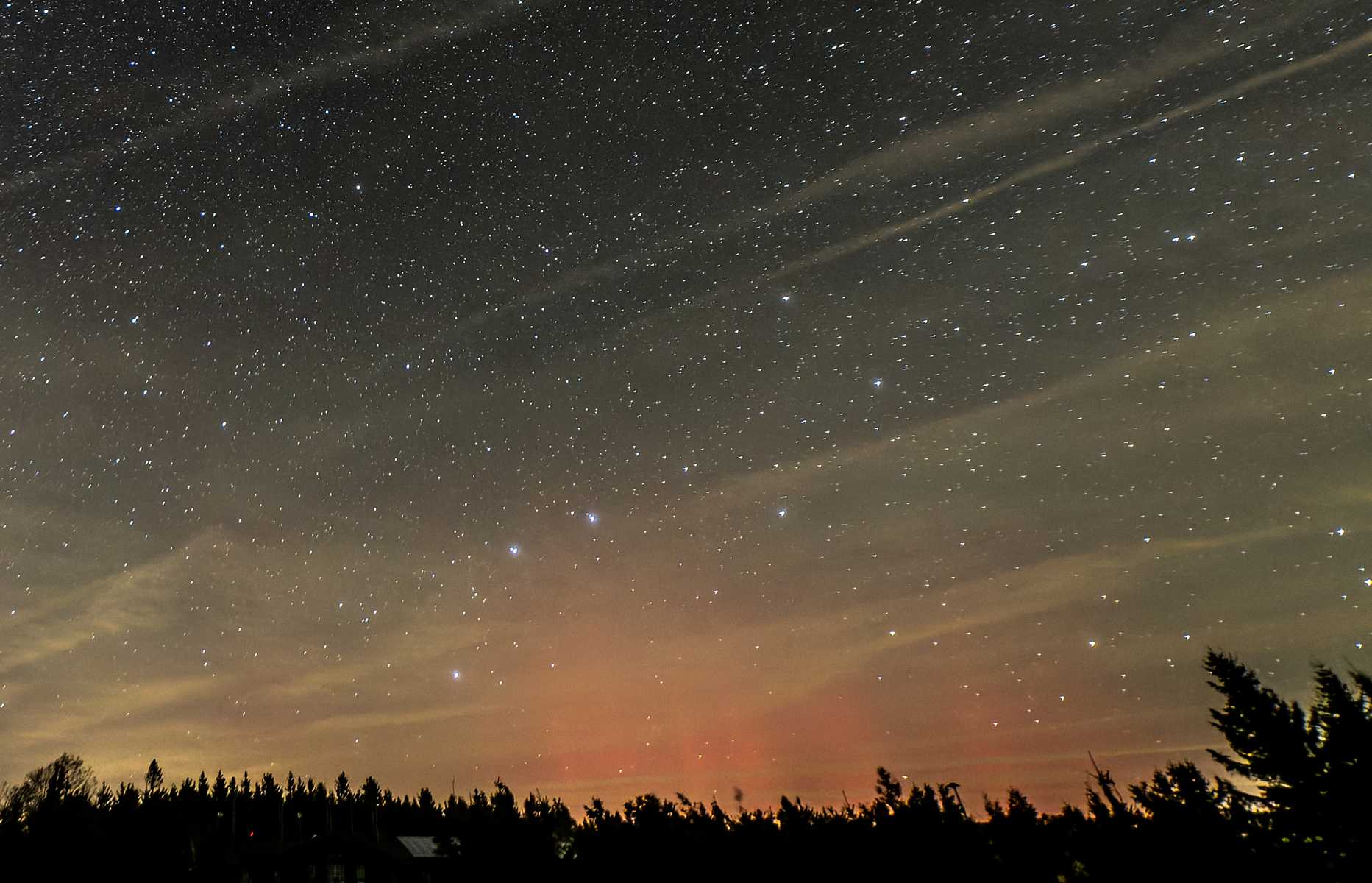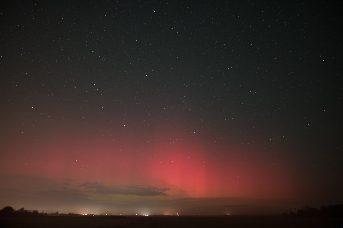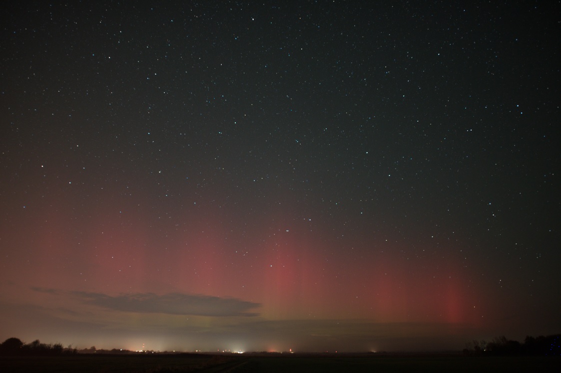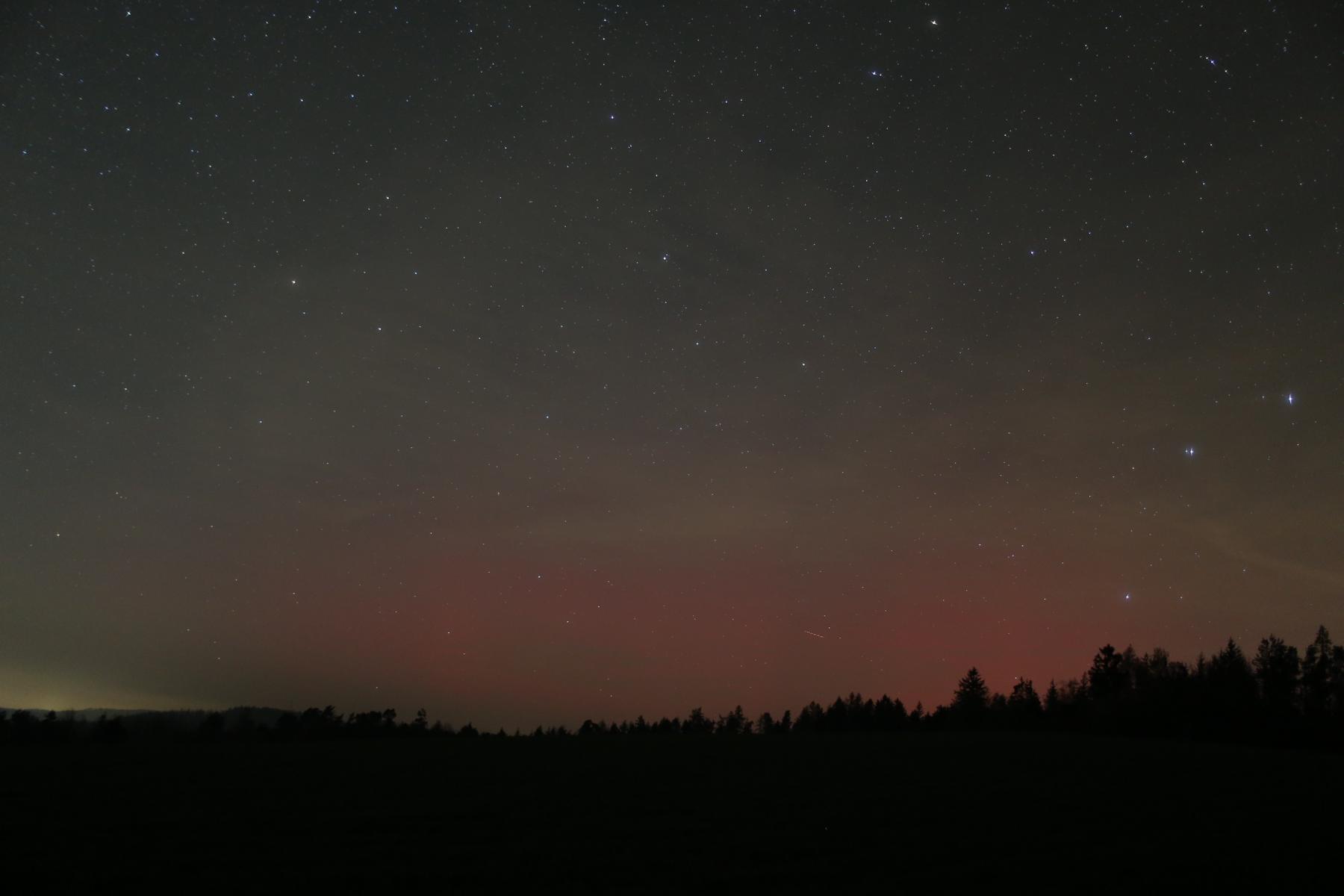 Als dann im späteren Verlauf der Nacht die Wolken kamen, wurde das überwiegend rote Polarlicht auch noch einmal recht deutlich nachweisbar: