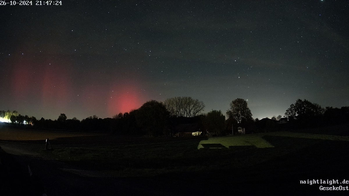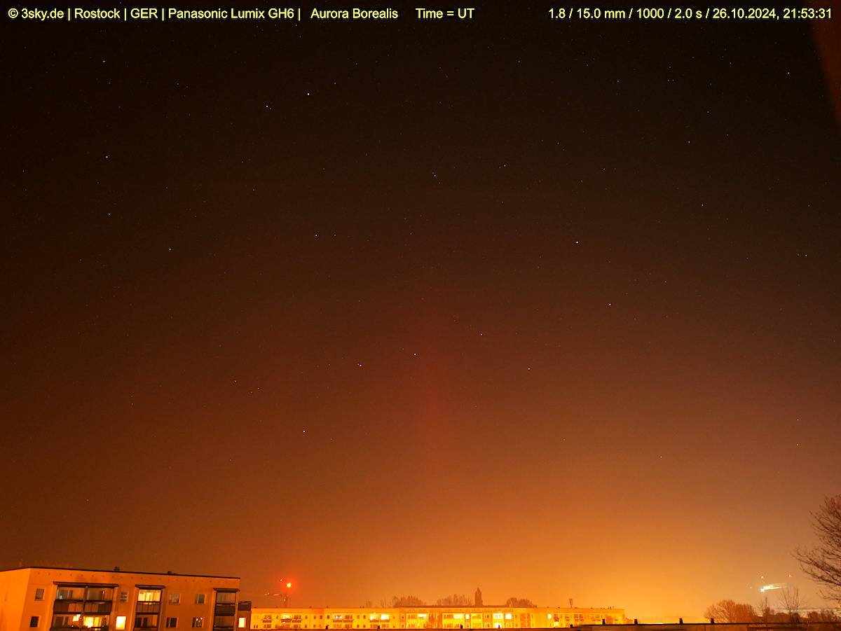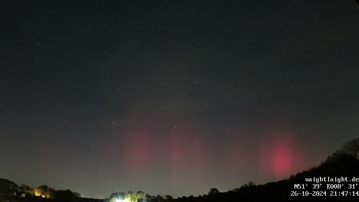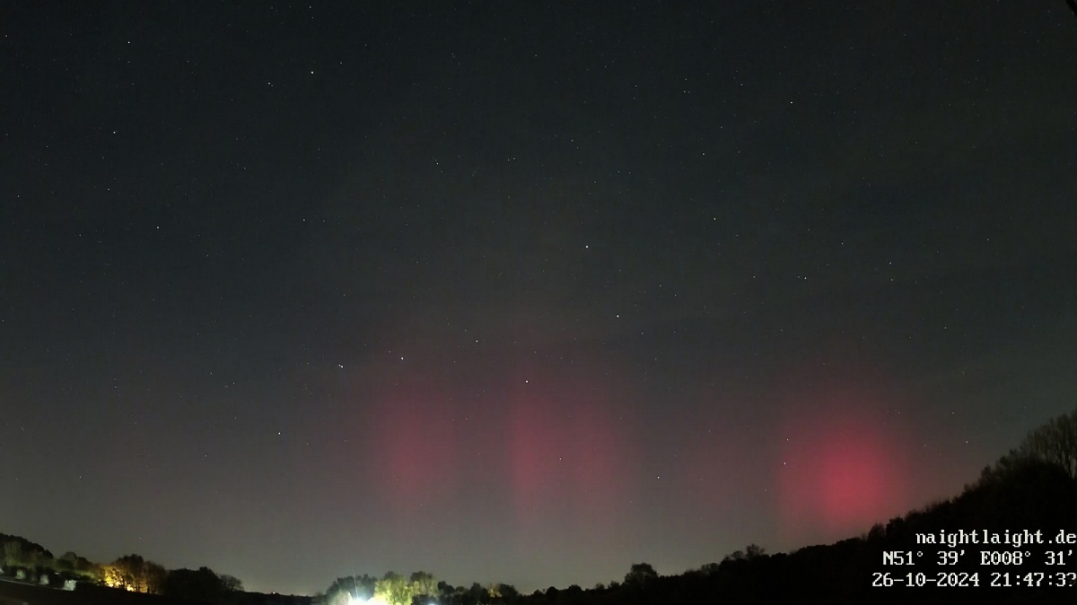 hier auch noch meine Beobachtung aus der letzten Nacht (26./27.10.). Leider nur fotografisch nachweisbares PL. Recht diffuse rötliche bis rotviolette Flächen. Zunehmend dunstig und aufziehender Nebel.