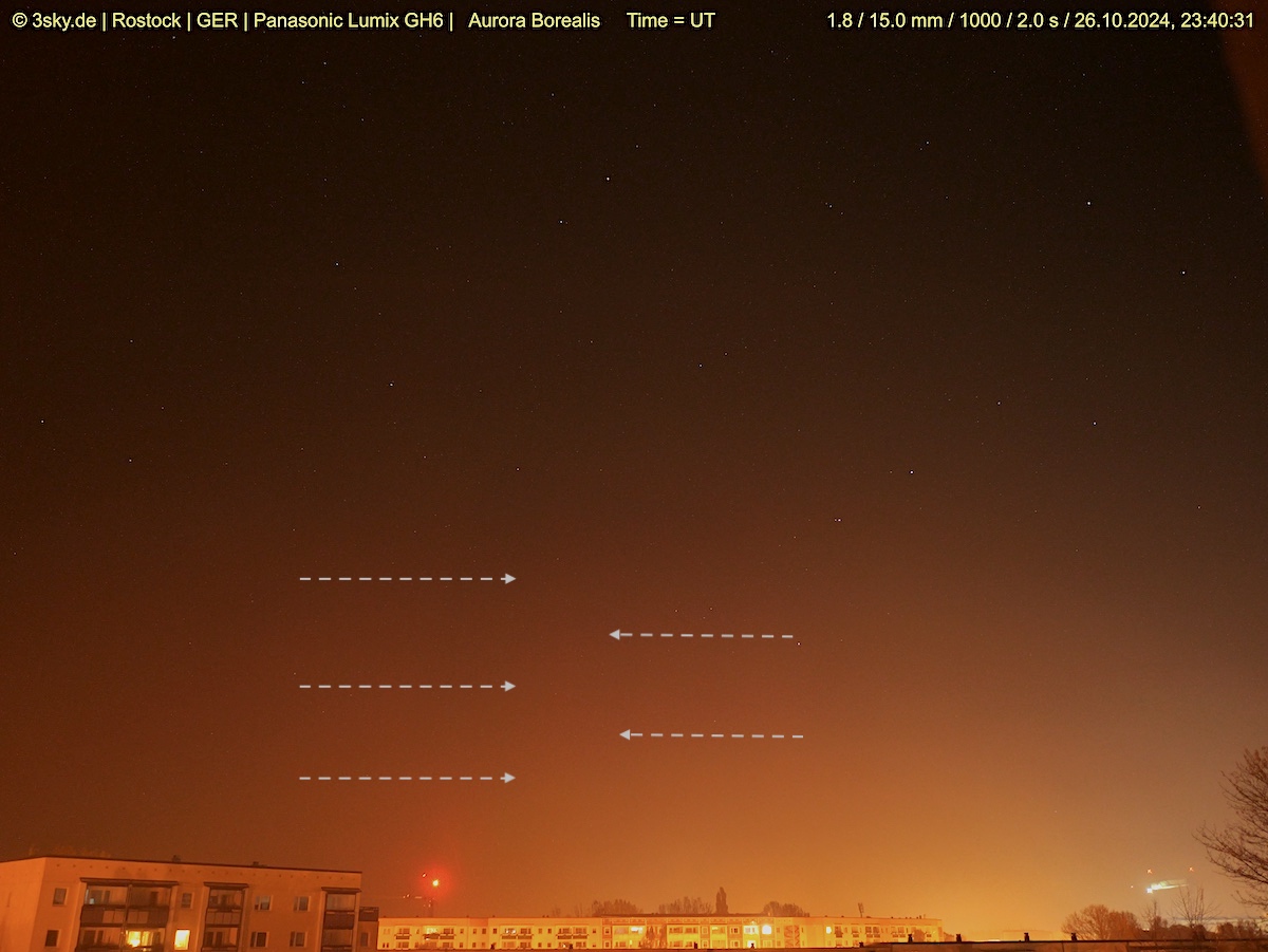 Danke für die wertvollen Hinweise. Diese beiden Bilder sind nur schnell mit dem Handy (Samsumg S24) mit der Nachtfunktion gemacht. Wir hatten leider nur ein paar Minuten Zeit dafür, da das ganze nicht so lang gedauert hat. Da habe ich nur schnell ein paar Schnappschüsse aus unserem Fenster gemacht. Ansonsten fotografieren wir mit einer Sony 7 R. Da geht das natürlich viel besser. Die war aber nicht aufgebaut, da wir auch nicht mit den PL gerechnet hatten. Ich hoffe, das wir noch mehr sehen werden und ich deine Hinweise zum Fotografieren ausprobieren und umsetzen kann.