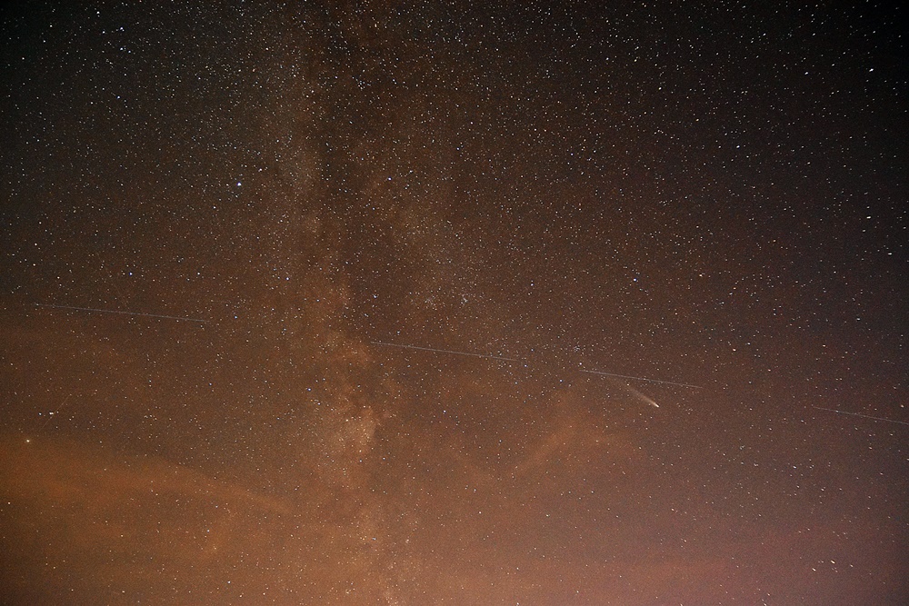 19:52 Uhr mit Milchstraße und Starlink Satelliten (?)