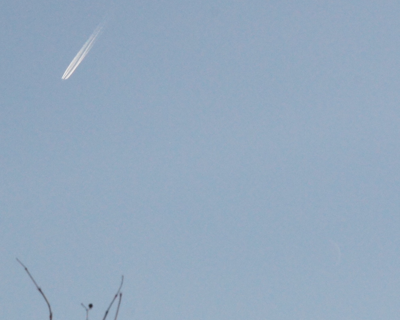 Auch ich hatte Mond&Venus mit Flugzeugen&kurzen Kondensstreifen abbilden können. Im Bild unten befindet sie sich etwa auf 2/5 der Strecke zwischen Flugzeug (links oben) und Mond (rechts unten): Gruß aus HD,