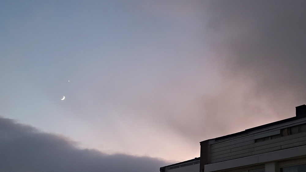Zwischen Regen-, Schnee- und Graupelschauern und in Wolkenlücken konnte ich Mond und Venus beobachten.