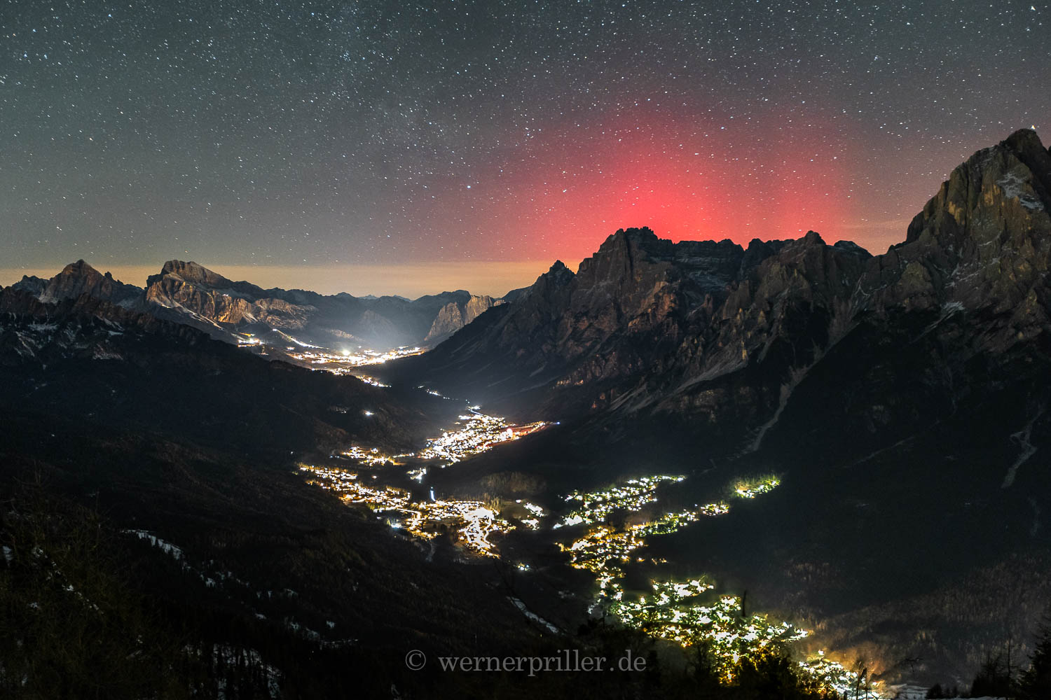 das neue Jahr begann für mich mit einem netten fotografischen Polarlicht. Um 0 Uhr bemerkte ich auf der Schafbergwebcam (https://schafberg.panomax.com?t=2025-01 ... z=100&tl=0) den rötlichen Himmel am Nordhorizont. Sogleich packte ich meine schon vorbereitete Fotoausrüstung ins Auto und fuhr zu meinem Beobachtungsort hoch überm Mühltal. Den Böller- und Raketenstaub ließ ich im Tal hinter mir zurück, der auf dem Bild deutlich zusehen ist.