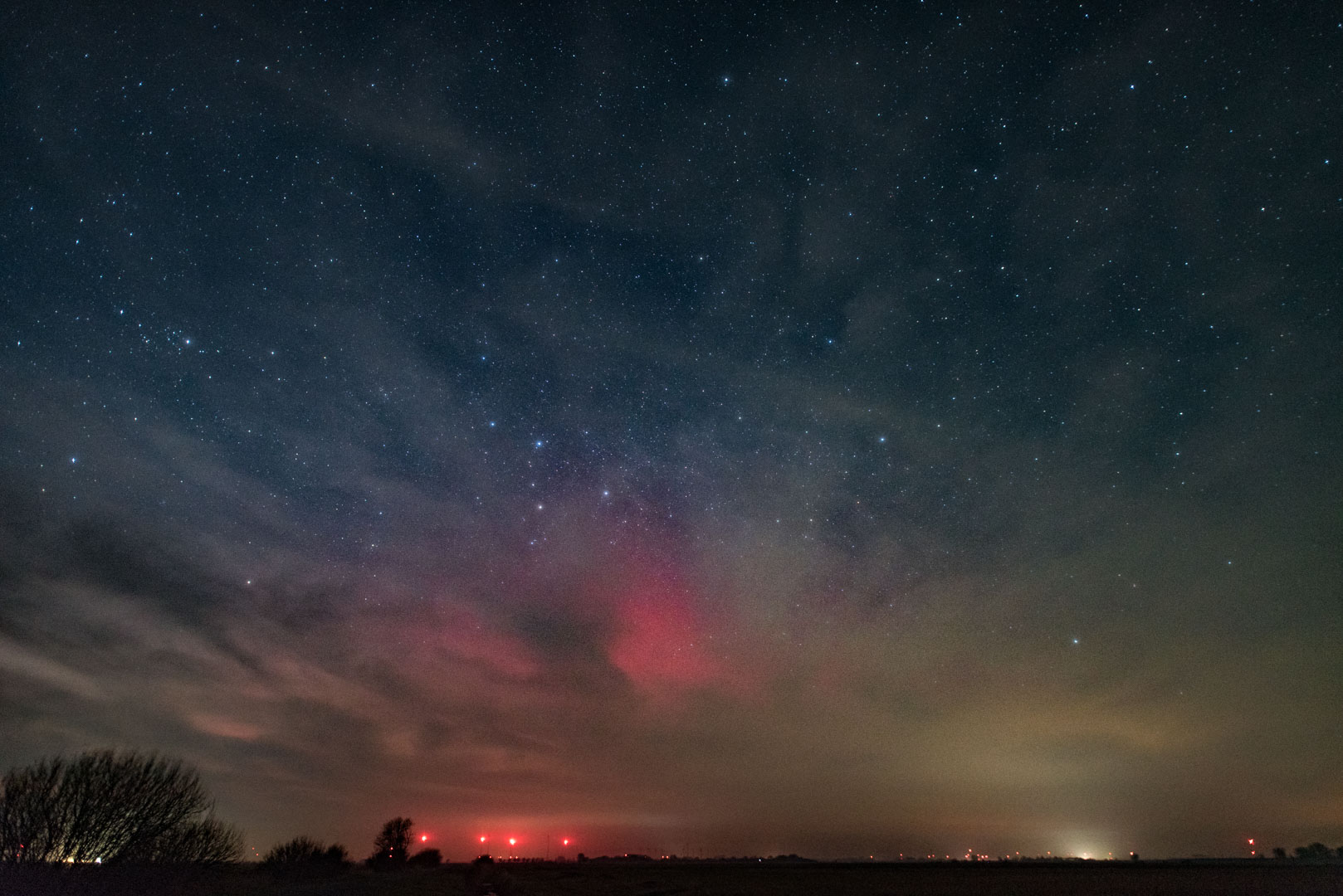 Anschließend etwas frustriert die Kamera am Nordfenster aufgestellt, ins Bett, und am nächsten Morgen entdeckt, dass ab ca. 0:05 MEZ mehrere Fotos rote Flecken zeigen :)