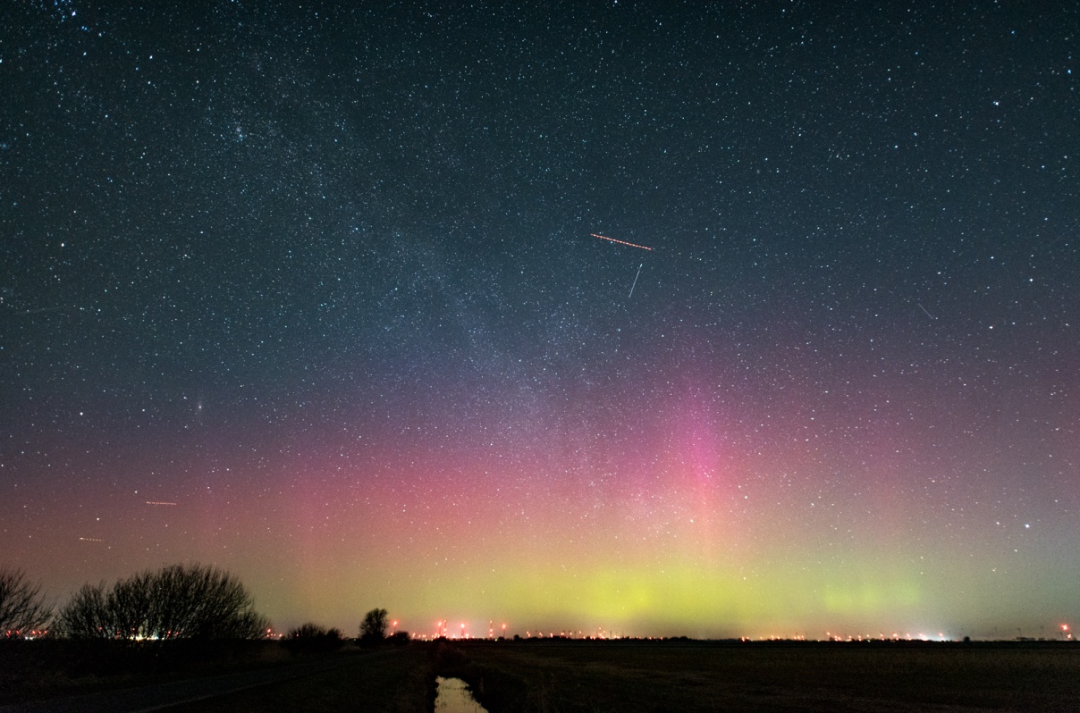 Auch an der priv. Wetterstation Süderlügum gab es ein deutliches fotografisches Polarlicht zu sehen. Die Beamer hatten eine geschätzte Höch von ca 60° übern Horizont.