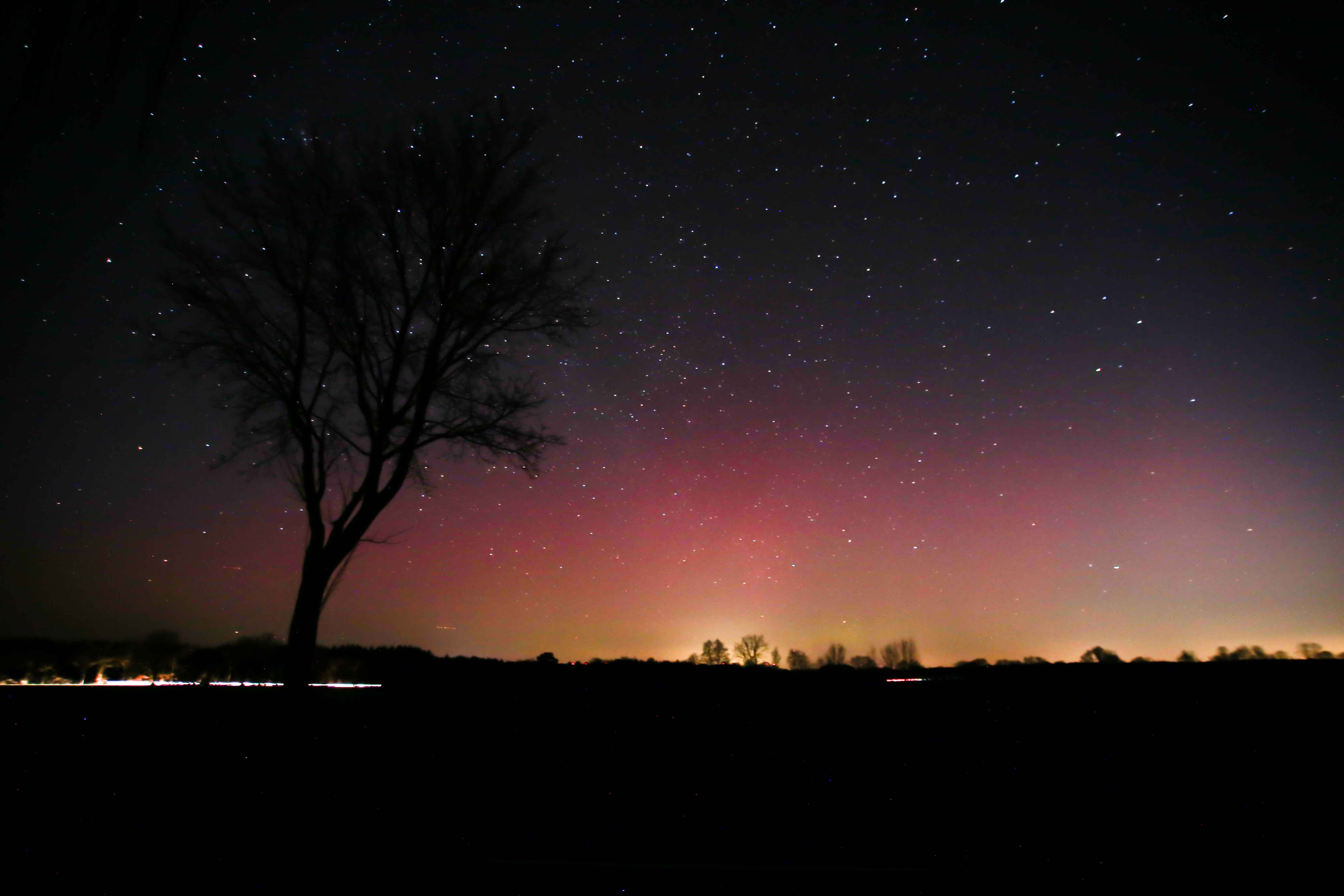 In Hamburg-Rahlstedt reicht es immerhin für fotografisches Polarlicht. Schöner Strahlenvorhang.