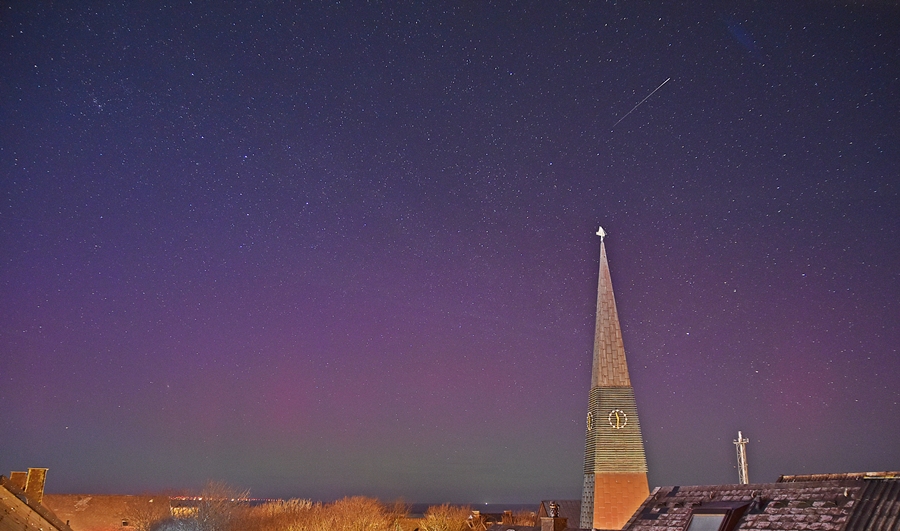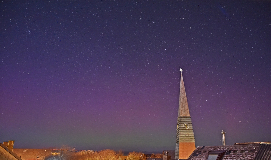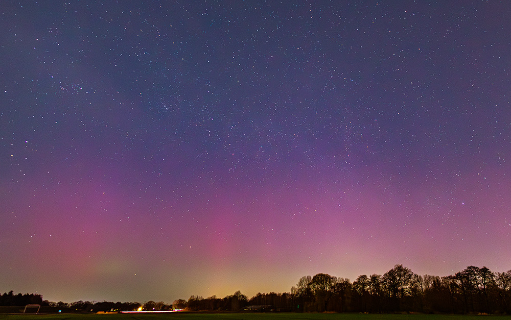 Auch an der priv. Wetterstation Süderlügum (54° 52´19″ N/8° 54´45″ O) wurde am 03.04.2025 in der Zeit von 23.15 - etwa 23.45 Uhr MESZ und dann wieder am 04.04.2025 in der Zeit von 04 - 05 Uhr MESZ ein fotografisches Polarlicht aufgezeichnet.