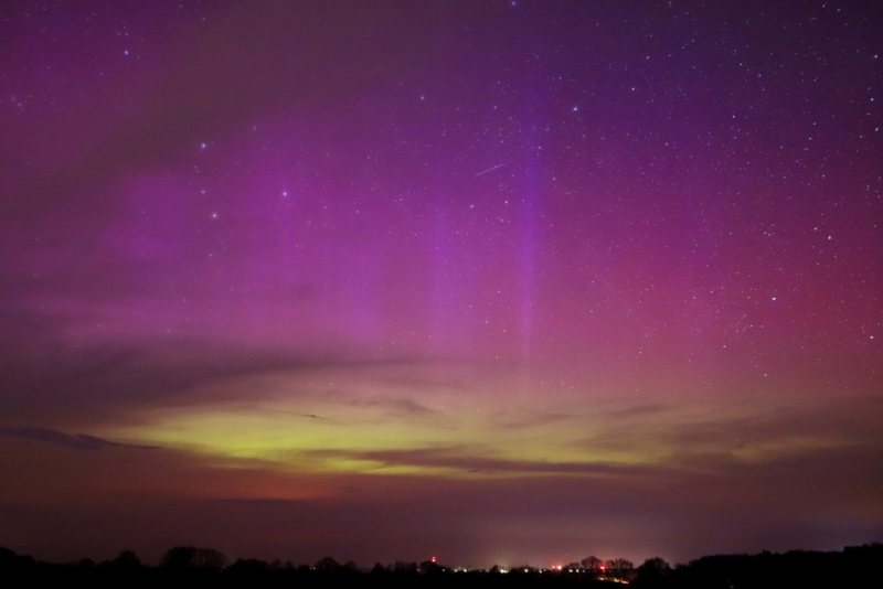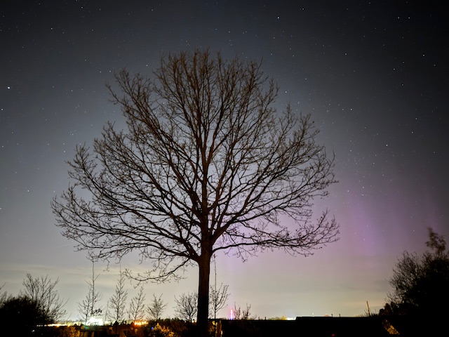 Am 16.04.25 ca. 22:30 Uhr Ortszeit war in Schleusingen 50,3° (Südthüringen) schwach visuelles Polarlicht zu sehen.