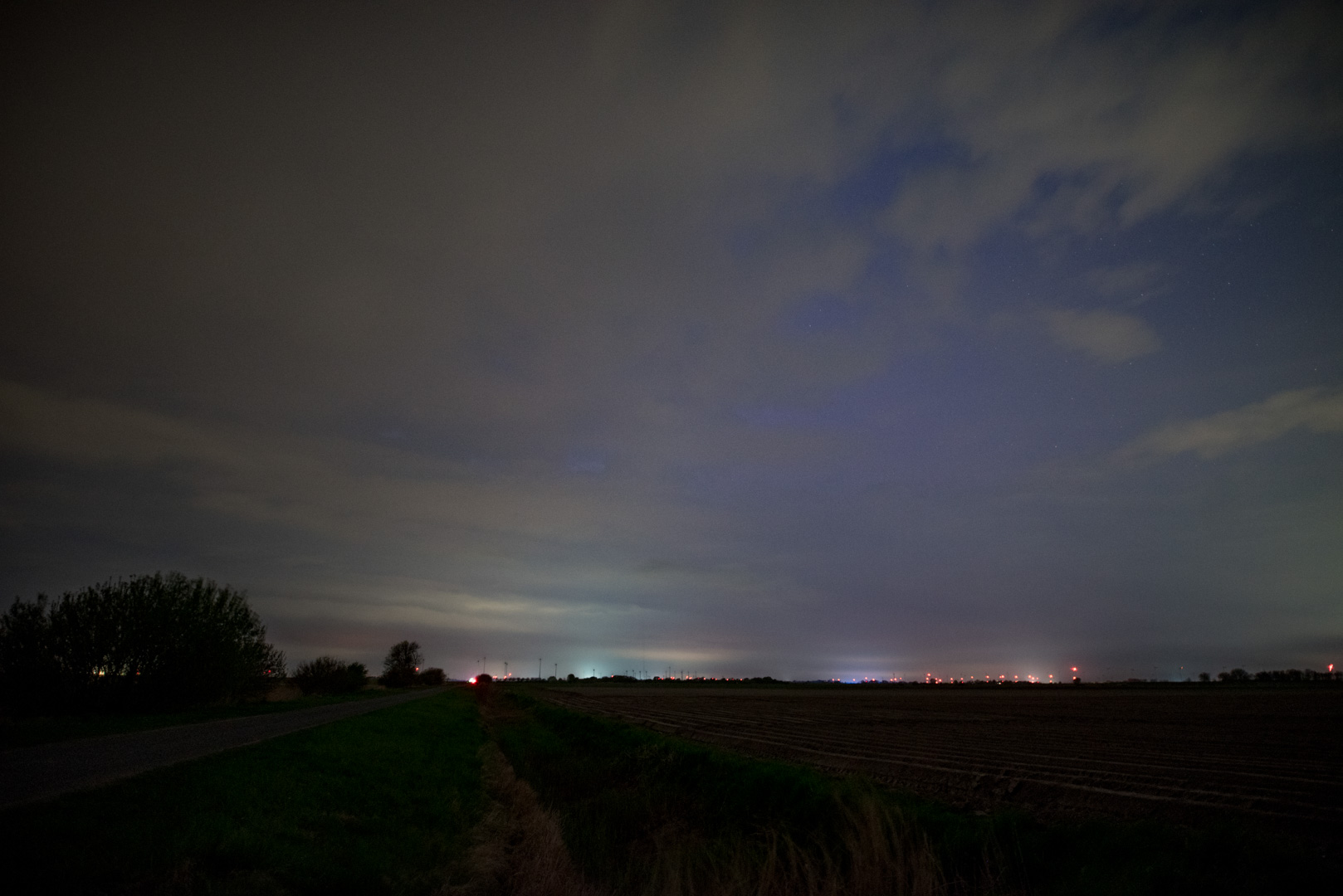 Ich bin gegen 20:00h UTC rausgefahren und habe um mich herum nur einen total bewölkten Himmel gesehen. Da Bz ja auch ins Plus gedreht war, hatte ich schon beschlossen, wieder nach Hause zu fahren. Beim Einpacken habe ich dann über mir tatsächlich vereinzelt Sterne sehen können. Da die Windrichtung stimmte und die Wolken Richtung N zogen, beschloss ich noch etwas zu verweilen. Zum Glück.
