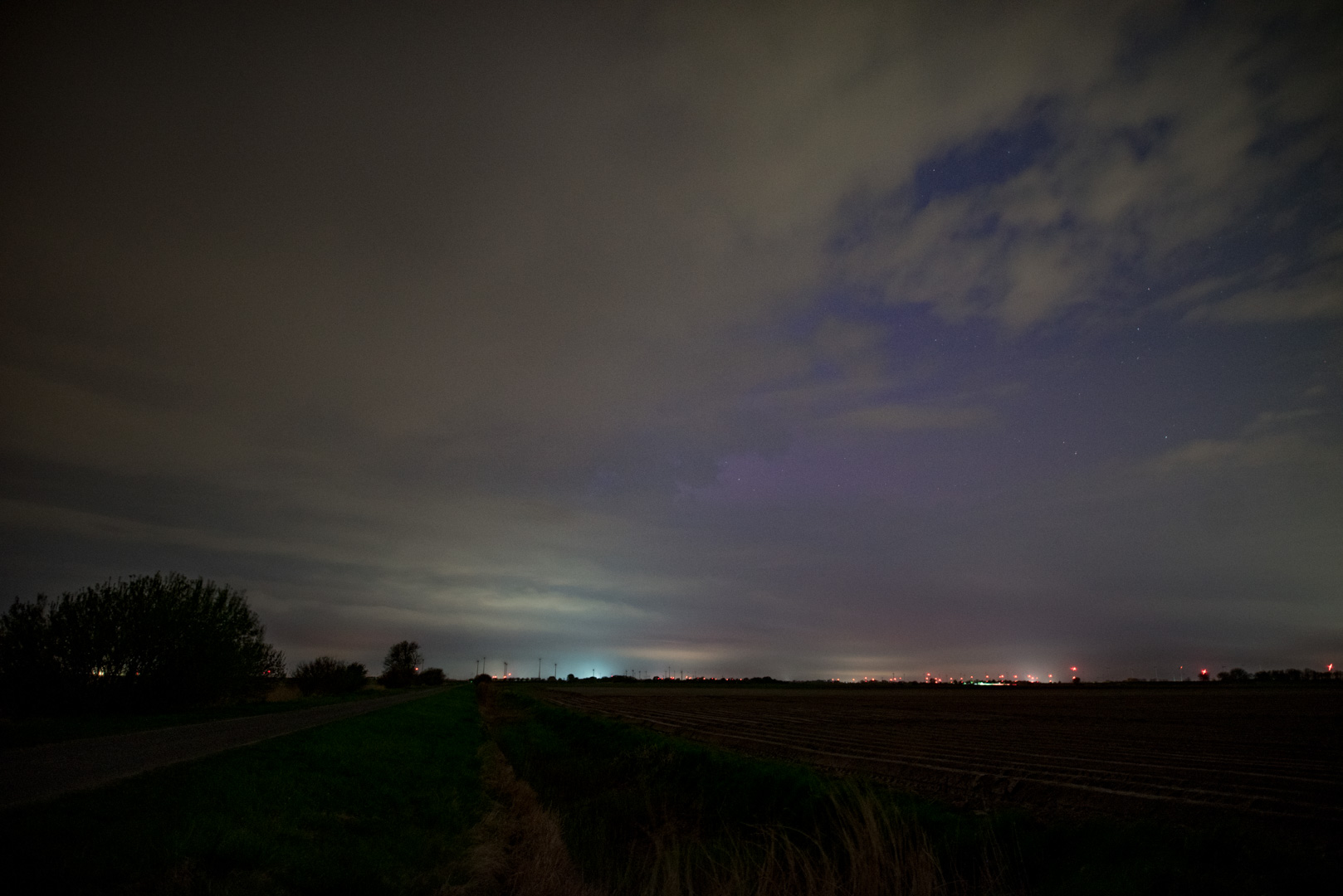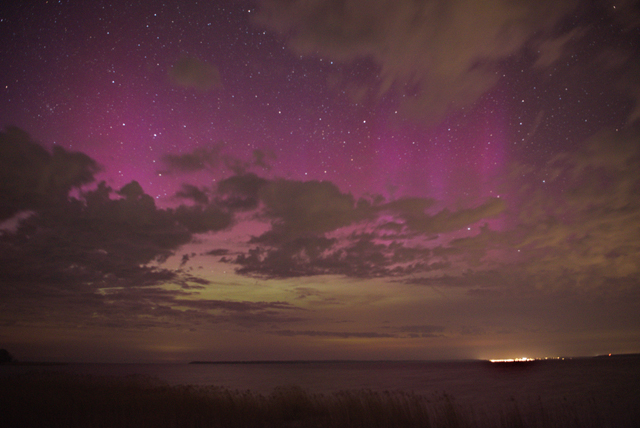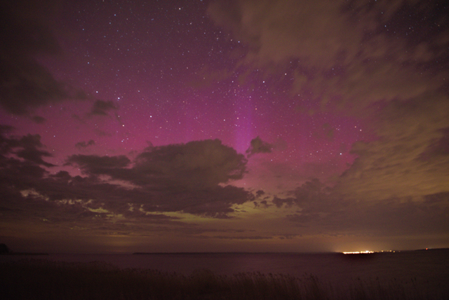 Das rötliche Leuchten ganz rechts auf dem ersten Bild ist sicherlich kein PL sondern Lichtverschmutzung, aber das diffuse lila dürfte sicherlich PL sein, denn es ist genau in den Bereichen zu sehen, wo man auch Sterne erkennen kann. Sicherlich gibt es schönere Polarlichter, aber immerhin hattest Du Glück, hier war es bis jetzt den ganzen Abend dicht bewölkt. Es erinnert mich sehr an meine Bilder von gestern. Zur besseren Beurteilung müsste man mal bei einer ähnlichen Wettersituation ohne entsprechend gute PL-Werte dort auch Fotos machen, wenn dann das "lila" dann auch da ist, ist es natürlich kein PL, aber heute Abend scheint es zu passen, auch was ich so von anderen Orten sehen kann.