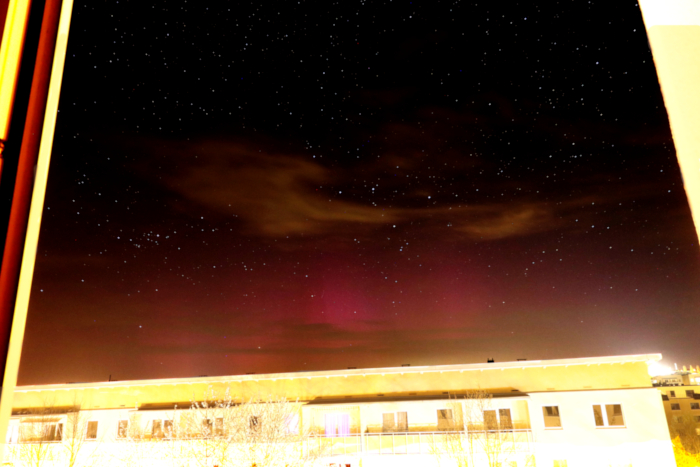nach einigen Beobachtungen am 60cm-Teleskop hielt ich die Kamera (mit Fisheye) vorsichtshalber gen Norden, und tatsächlich war ein rötlicher Schimmer zu sehen! Nach den Berichten hier, hätte ich wohl noch länger beobachten sollen ....