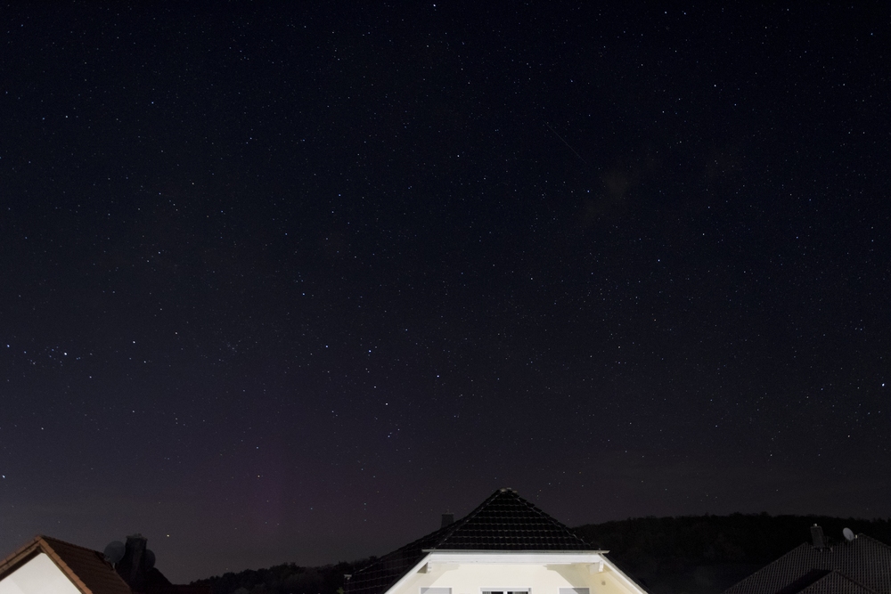 Da checkt man einmal nicht die Daten und wird dann eiskalt kurz vorm Zubettgehen überrascht - um noch schnell einen dunklen Ort aufzusuchen war es leider zu spät. Aber fotografisch ließ es sich problemlos auch am hellen Fenster nachweisen, mit visueller Sichtbarkeit war aber nichts zu wollen (zu heller Standort + etwas Dunst gen Nordhorizont). Die drei Fotos sind im Abstand von etwa 30 - 40s entstanden, dass mittlere wurde ziemlich genau um 00:09 MESZ aufgenommen, und stellen auch die besten Aufnahmen aus meinem Beobachtungszeitraum dar.