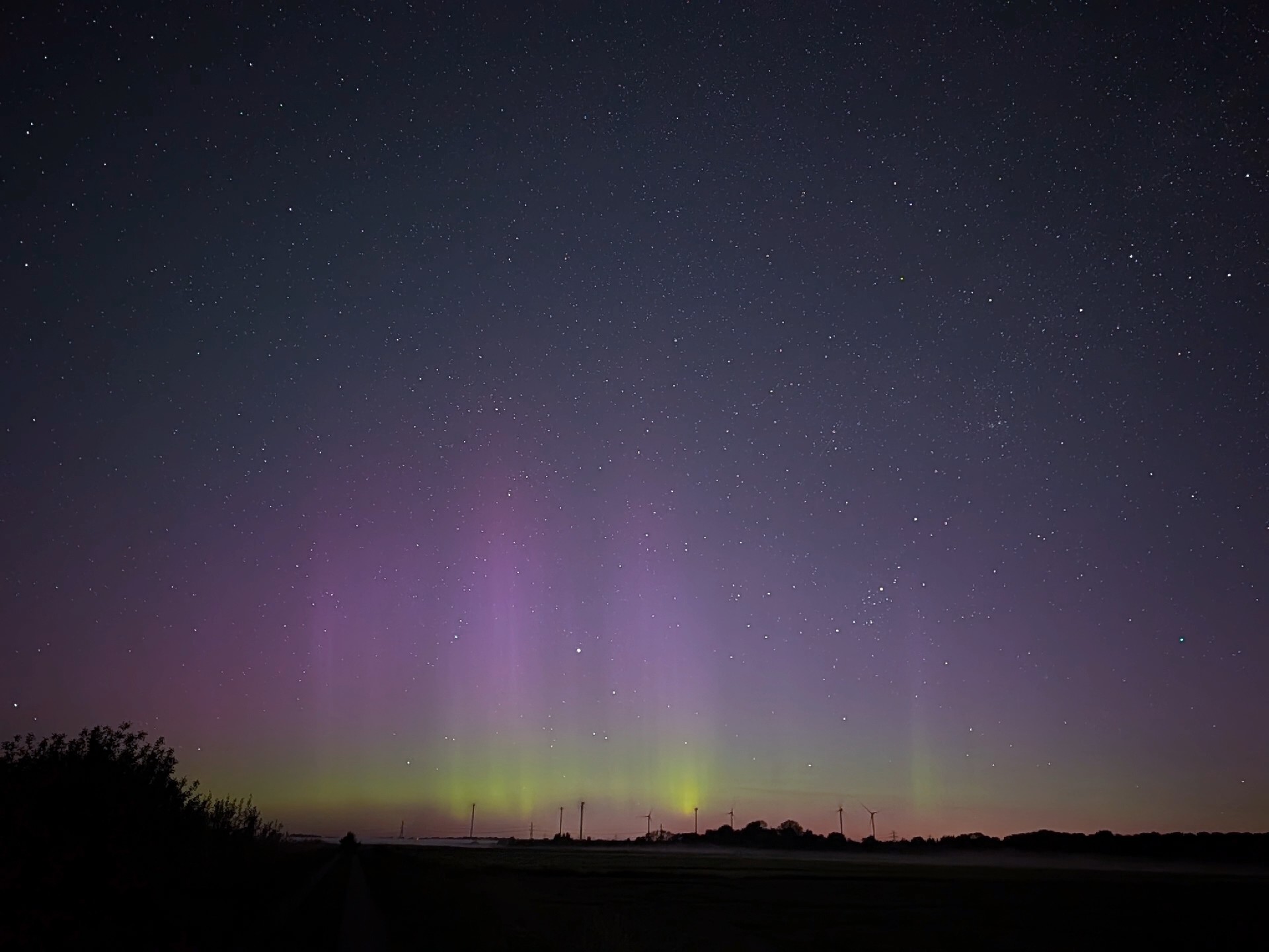 Auch in Süderlügum (54° 52´19″ N/8° 54´45″ O) gab es am 17.05.25 wieder ein fotografisches Polarlicht zu sehen.