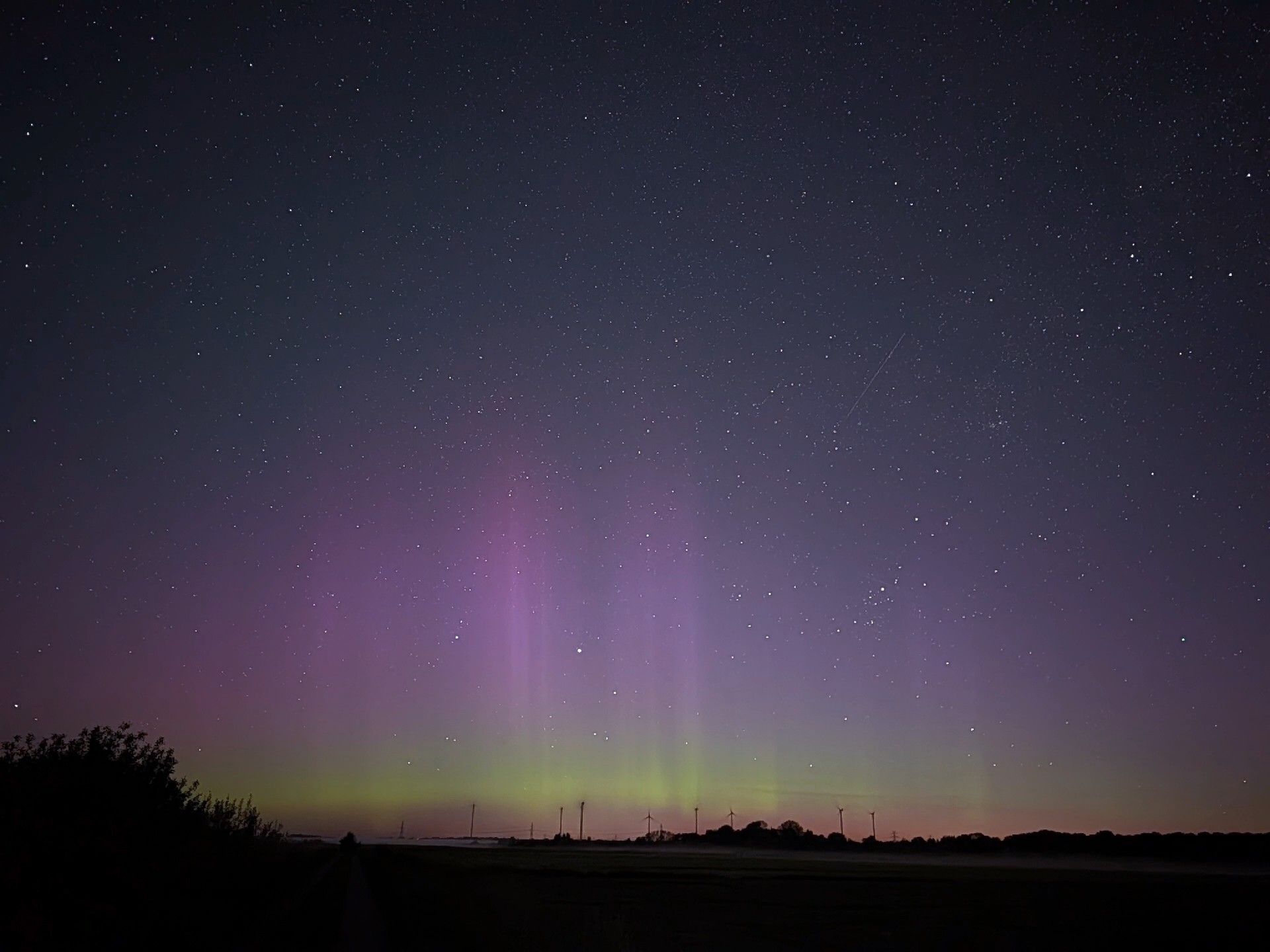 Auch in Süderlügum (54° 52´19″ N/8° 54´45″ O) gab es am 17.05.25 wieder ein fotografisches Polarlicht zu sehen.