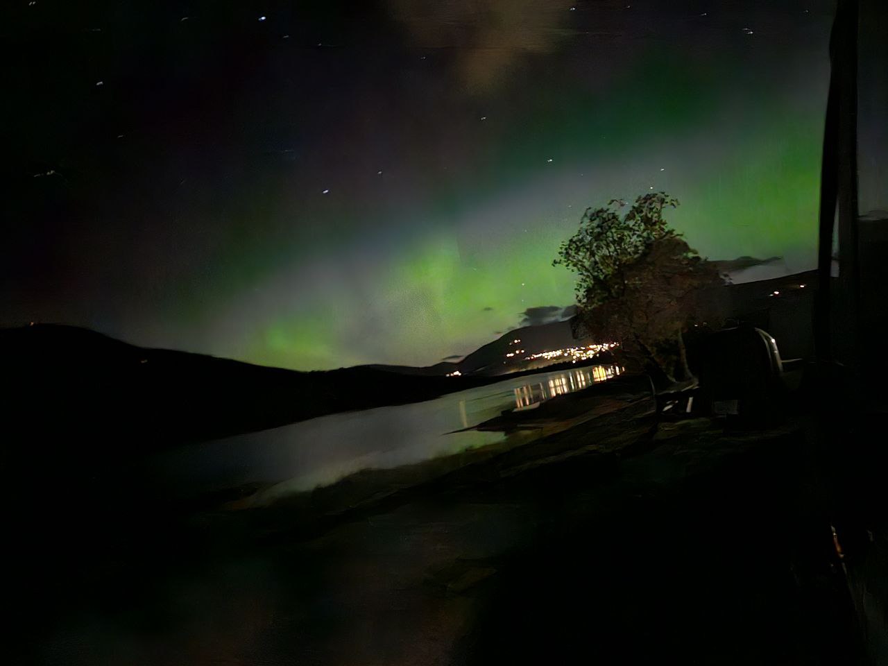 Ich bin aktuell in Norwegen (ca. 61°N) und durfte ein feines PL erleben. Keine spektakulären Substürme, aber Beamer bis max. 60 Grad, und ein durchgängiger grüner Bogen. Anbei zwei unbearbeitete Handyfotos.