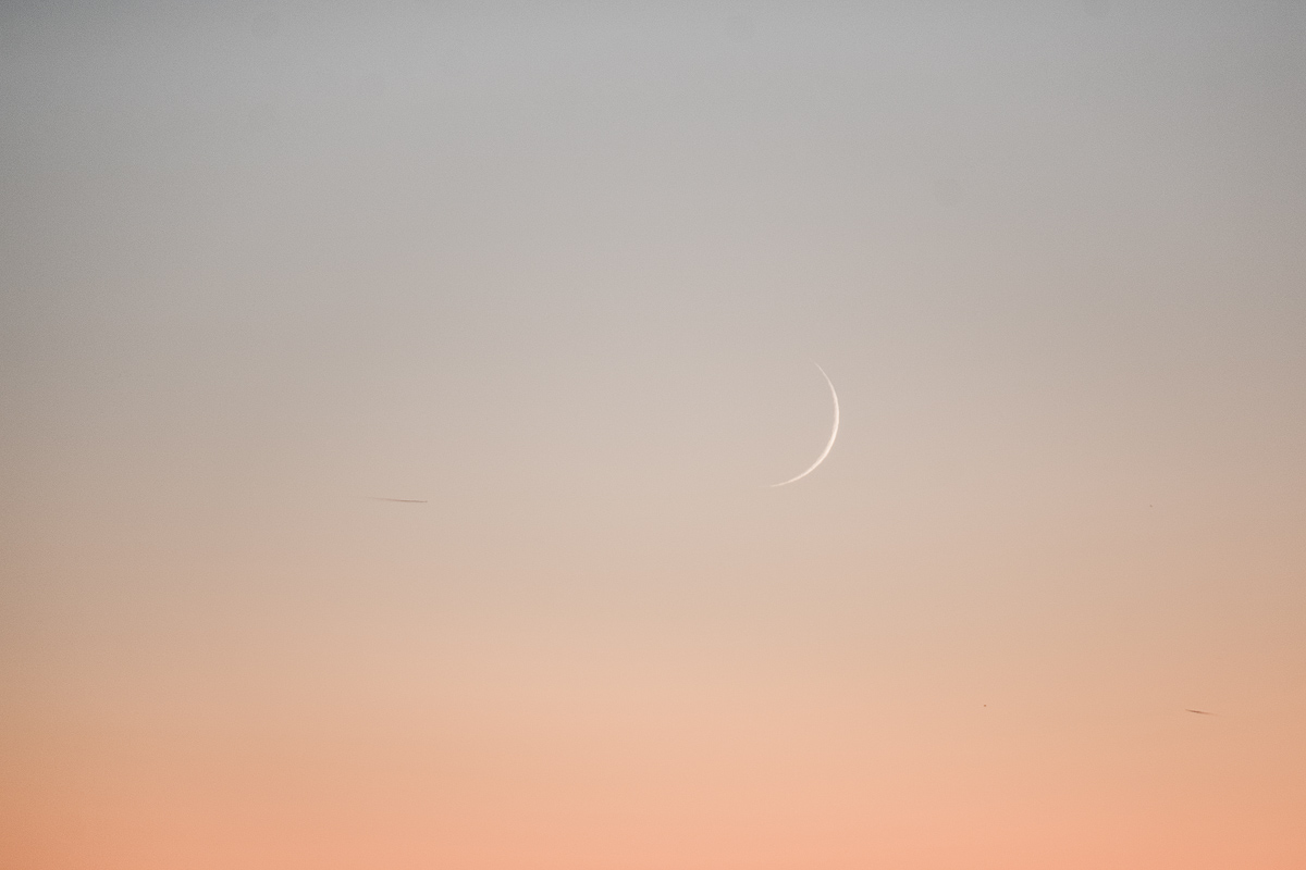 Hier wäre ein solches Unterfangen trotz Mondalters von etwa 36 Stunden kaum machbar gewesen, da sich die Ekliptik zur Zeit abends nur sehr flach über den Westhorizont erhebt und der Mond schon 10 min nach Sonnenuntergang nur noch 2 Grad hoch stand.