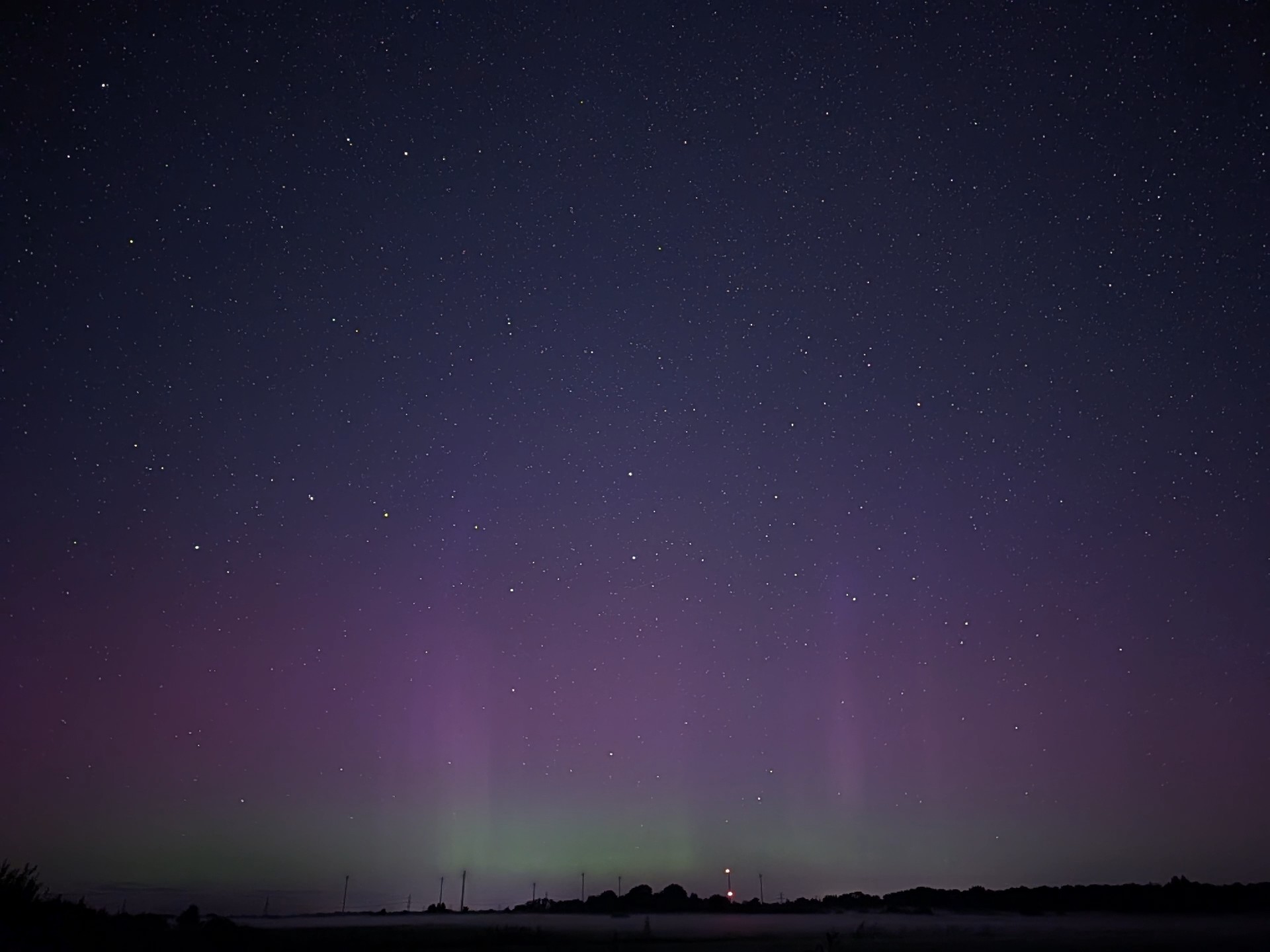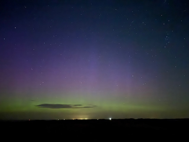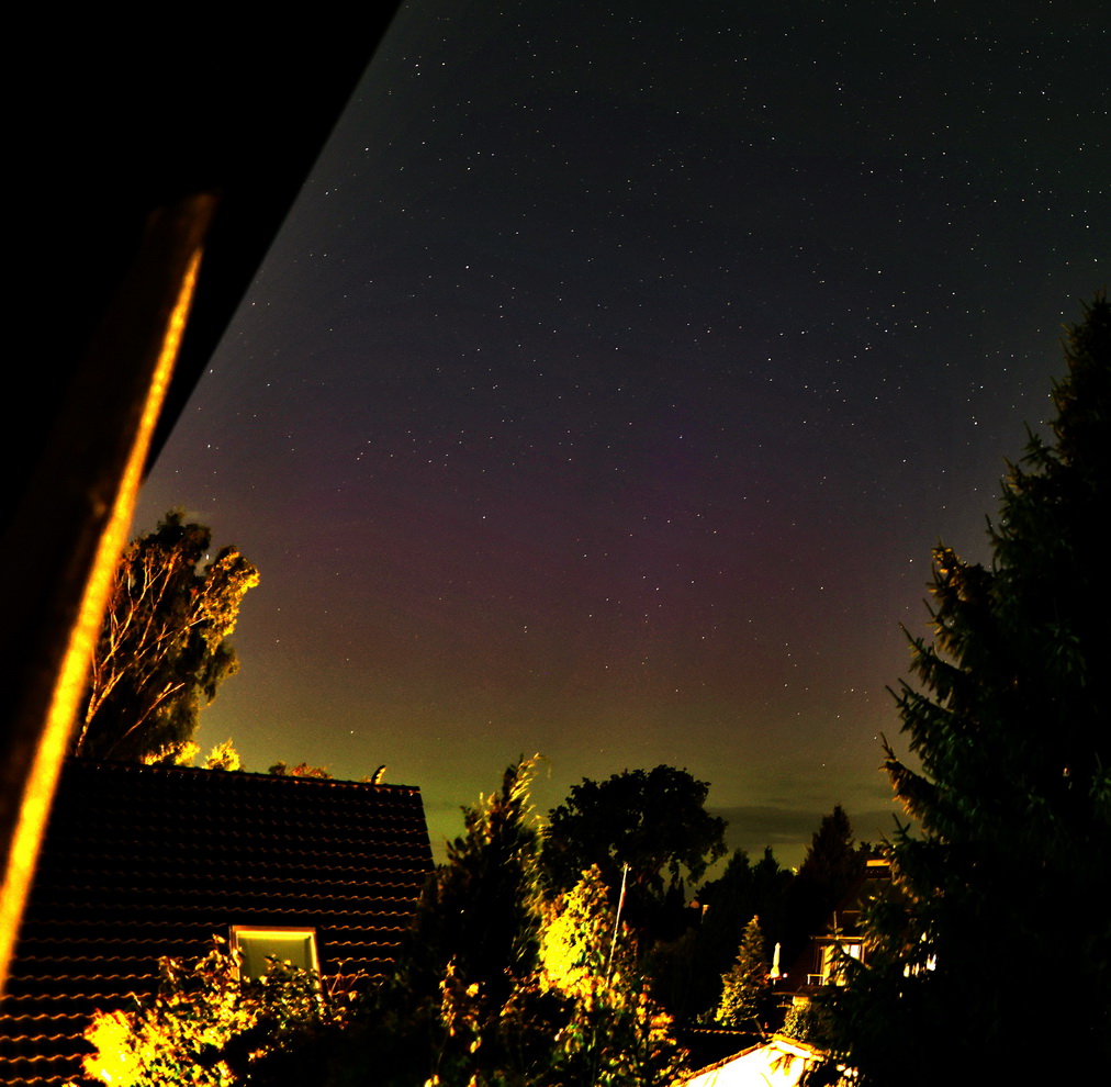 Ist es bei dieser Prüfaufnahme vorm schlafen gehen heutiges wunschdenken, dass der helle Bereich am Horizont grün ist? Auf anderen Bildern Minuten vorher sowie auf verschwommenen etwas später hab ich nicht so hellen Horizont gehabt, könnte aber auch vom Handy erzeugte Wunsch Halluzinationen sein 🤣🙄?