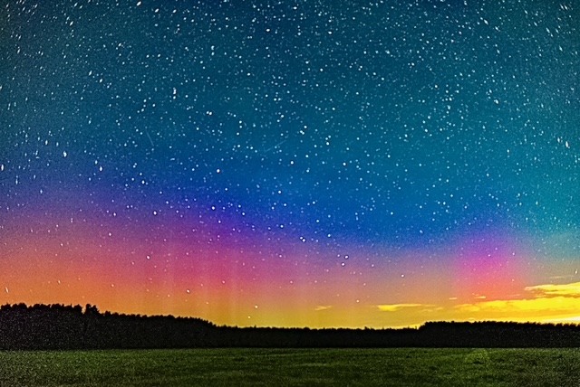 Ist es bei dieser Prüfaufnahme vorm schlafen gehen heutiges wunschdenken, dass der helle Bereich am Horizont grün ist? Auf anderen Bildern Minuten vorher sowie auf verschwommenen etwas später hab ich nicht so hellen Horizont gehabt, könnte aber auch vom Handy erzeugte Wunsch Halluzinationen sein 🤣🙄?