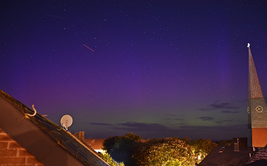 Schließlich steigerte sich die PL-Aktivität an einem Standort (bei Lübbecke, auf ca. 52.3°N) auf ein schwach visuelles Level: