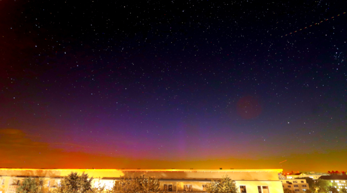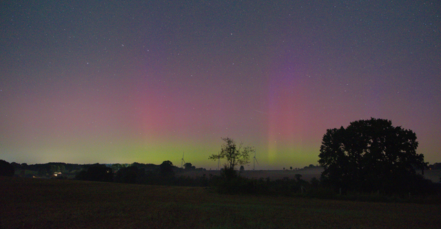 Auch an der priv. Wetterstation Süderlügum (54° 52´19″ N/8° 54´45″ O) gab es ein mäßiges fotografisches Polarlicht.