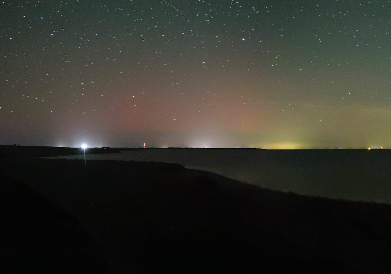 Guten Morgen, ich eröffne mal einen Post für diese Nacht. Auf der Amrum Kamera gab es kurzzeitig rötliches diffuses Polarlicht.