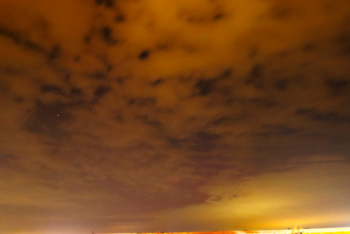 Ich bin gerade eben die Bilder der Nacht vom 29. auf den 30.09. nochmal durchgegangen. Es war in jener leider sehr bewölkt, rauszugehen hätte sich einfach nicht gelohnt, eine Erkältung erleichterte diese Entscheidung zusätzlich. Ab und an habe ich die Kamera aber dennoch am Fenster laufen lassen - manchmal hat man ja Glück mit einer Wolkenlücke im richtigen Moment. Ich hatte in der Nacht ein bisschen den Verdacht, auf dem Display zwischen den Wolken etwas rötlich schimmern gesehen zu haben, habe dann aber doch nicht viel darauf gegeben und war bis vorhin auch nicht dazu gekommen, mir diese Bilder nochmal genauer anzuschauen. Aber, siehe da, tatsächlich doch was drauf! Wie auch in der darauf folgenden Nacht hat das Polarlicht bis in den Thüringer Wald gereicht.