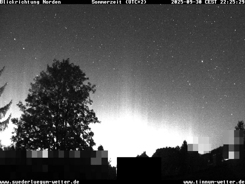 Die Webcam der priv. Wetterstation Süderlügum (54° 52´19″ N/8° 54´45″ O) hat wieder ein deutliches fotografisches Polarlicht aufgezeichnet.