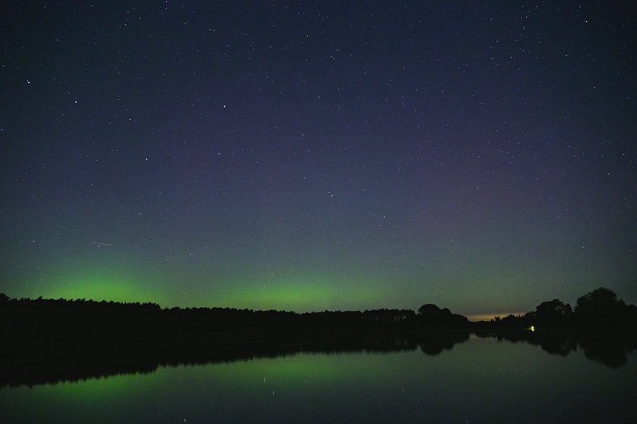 Das Polarlicht spiegelte sich sehr schön im ruhigen Wasser des Sees. Es wurde noch vor Mitternacht allerdings zunehmend feucht und neblig, so dass ich die Beobachtung dann abgebrochen hab.