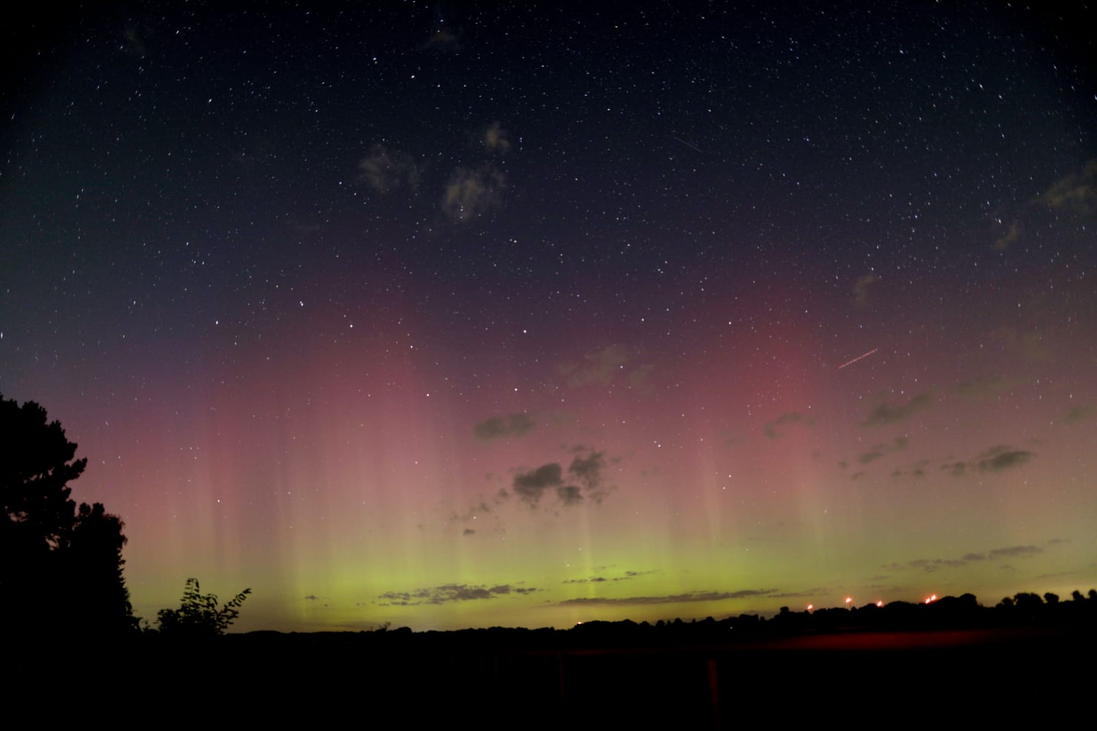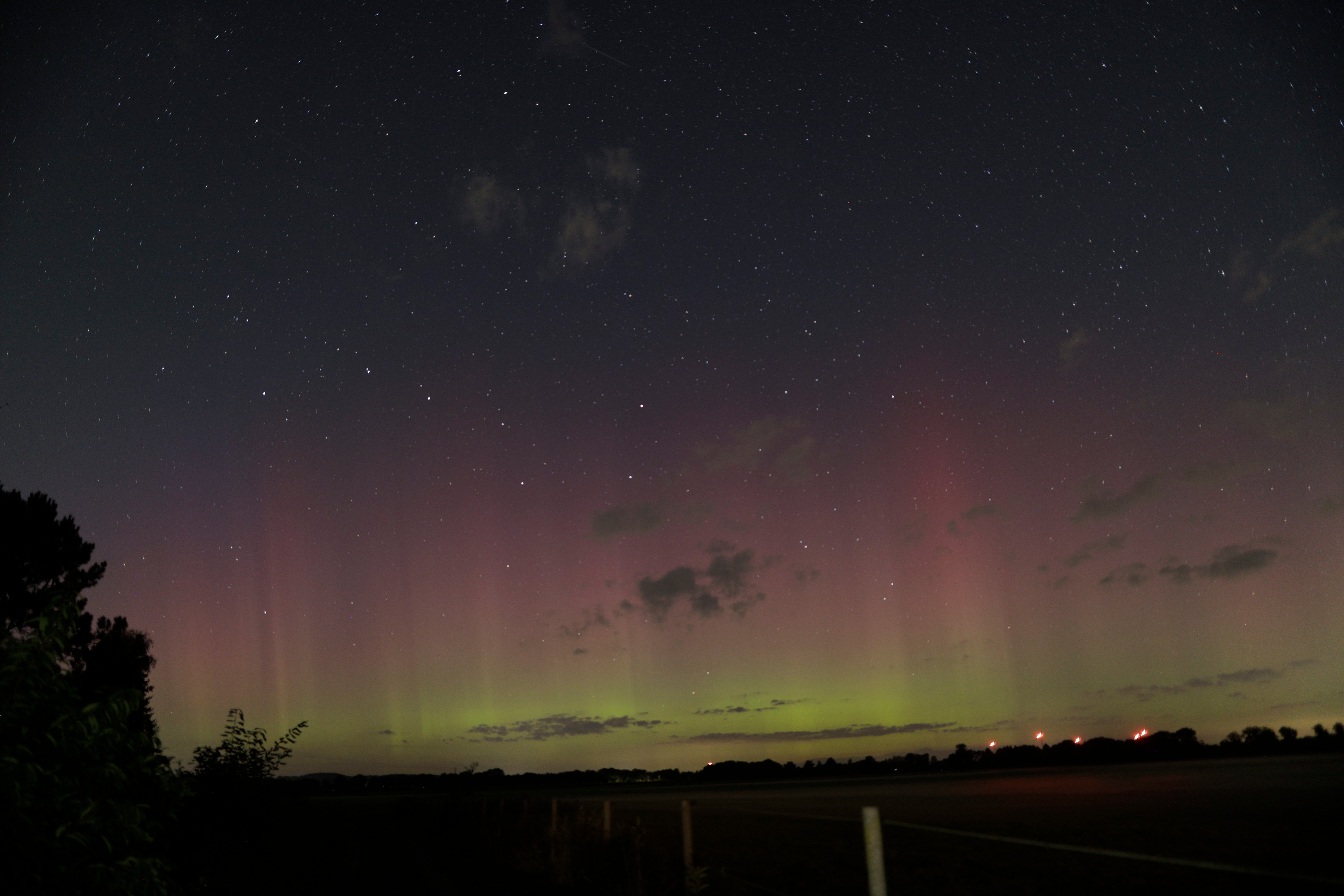Bemerkung: Zunächst ein deutlicher und lange Zeit stabiler grüner Bogen. Später dann mehrere grüne Bögen, die sich recht schnell und wie pulsierend bewegten (so wie Jörg das auch schon beschrieben hat). Es waren teilweise Einzelstrahlen, Strahlenbündel und -Bänder deutlich mit bloßem Auge zu erkennen. Teilweise ließen sich auch rötliche Flächen visuell erkennen und der grüne Bogen/die grünen Bögen waren zeitweise hell grau-grünlich wahrnehmbar.