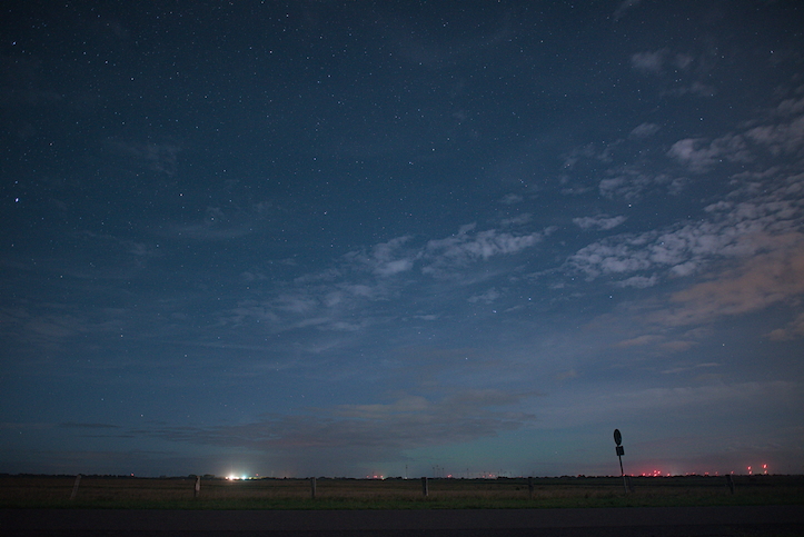 Ich bin erst sehr viel später rausgefahren. An der Westküste war es bis kurz vor Mitternacht komplett dicht. Auch die Amrum-Webcams verhießen nichts Gutes. Plötzlich waren im Nordosten der Mond und die Sterne klar zu sehen. Kurzentschlossen habe ich mich dann aufgerafft und bin an meinen Beobachtungsplatz in den Speicherkoog gefahren. Bis auf eine horizontnahe Wolkenbank war die Sicht gar nicht schlecht.